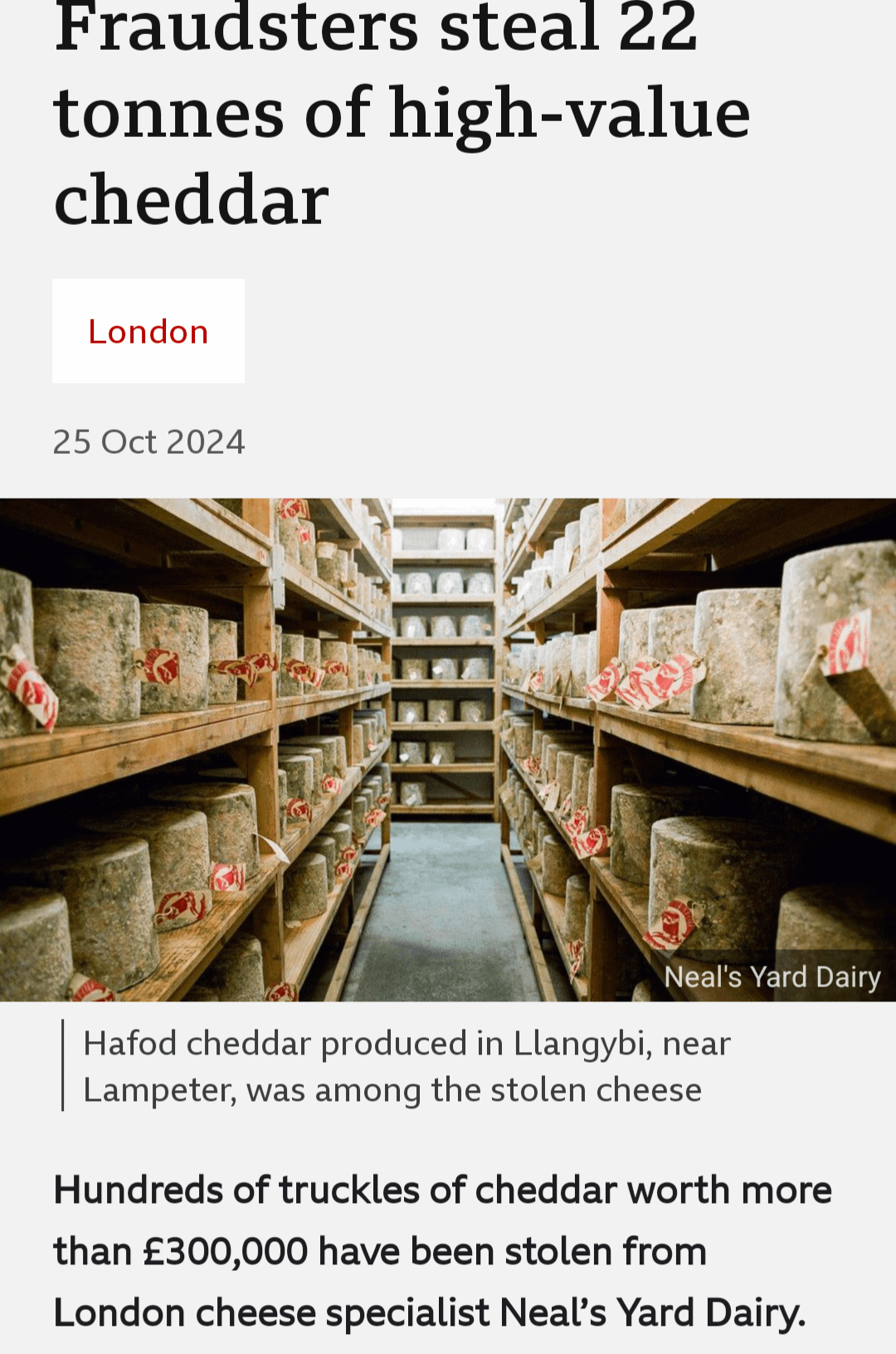But joking aside, what a nightmare for the diaries and for Neal's yard!Be aware if you get offered any cheddars (Hafod Welsh, Westcombe or Pitchfork) in strange places. They'll be planning to sell it somewhere.by Illustrious-Divide95 Write A CommentYou must be logged in to post a comment.
