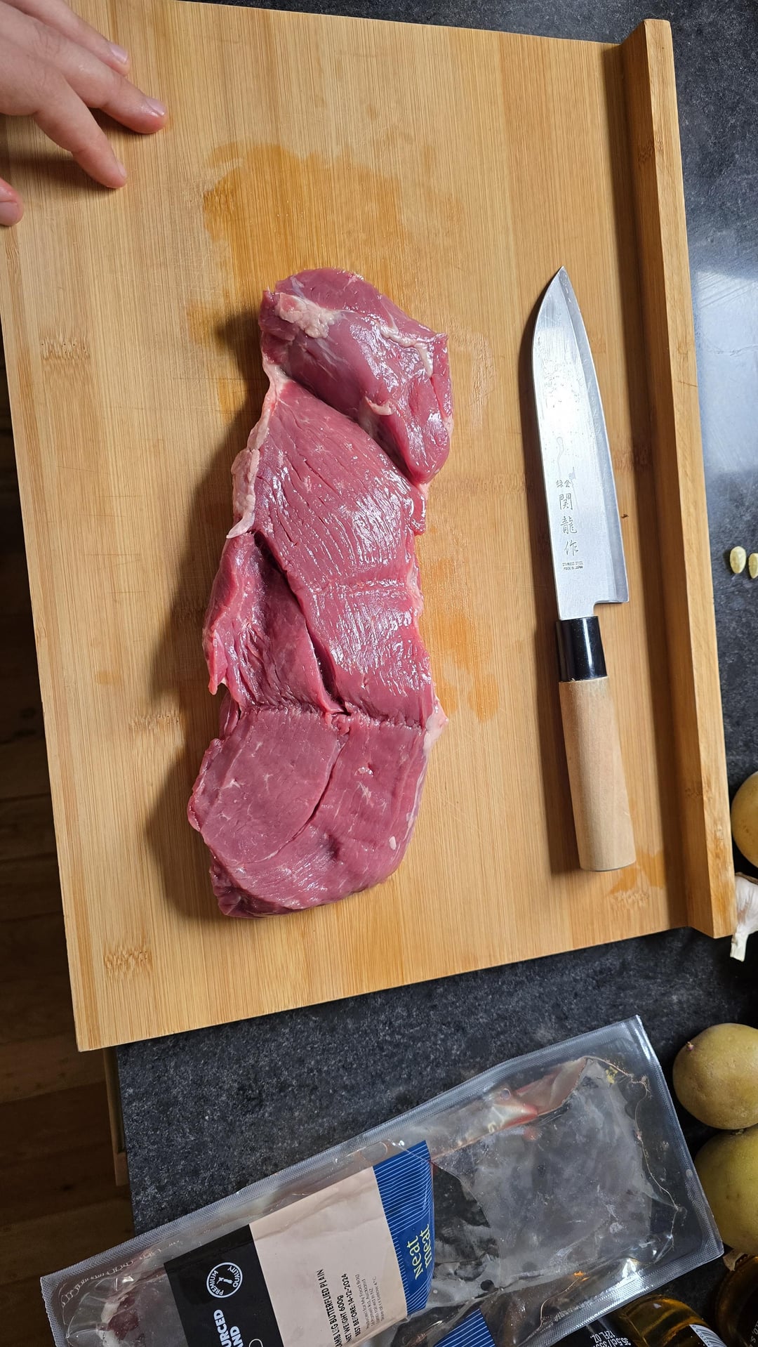 The lamb got 3h at 57 °C (≈135 °F) which I think was a bit too much for such a thin cut and wanted it a little more pink.