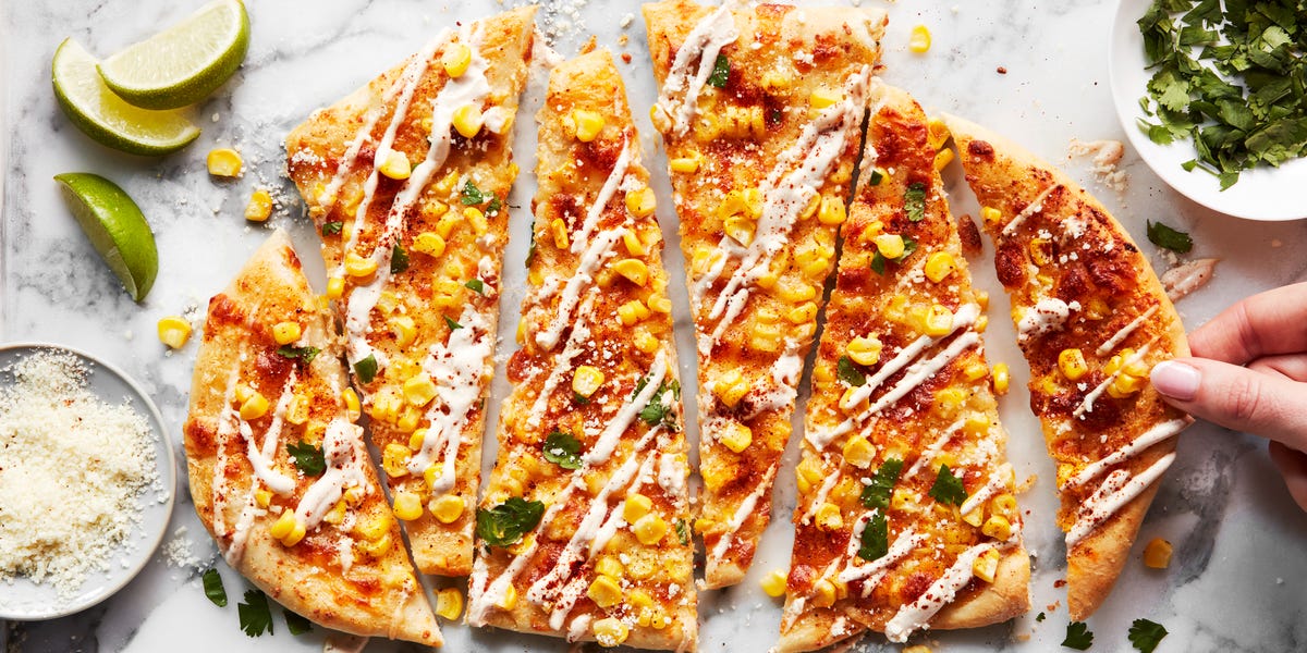 5Mexican Street Corn Flatbreadflatbread topped with corn, cheese, and cilantroPHOTO: JOSEPH DE LEO; FOOD STYLING: MAKINZE GORE