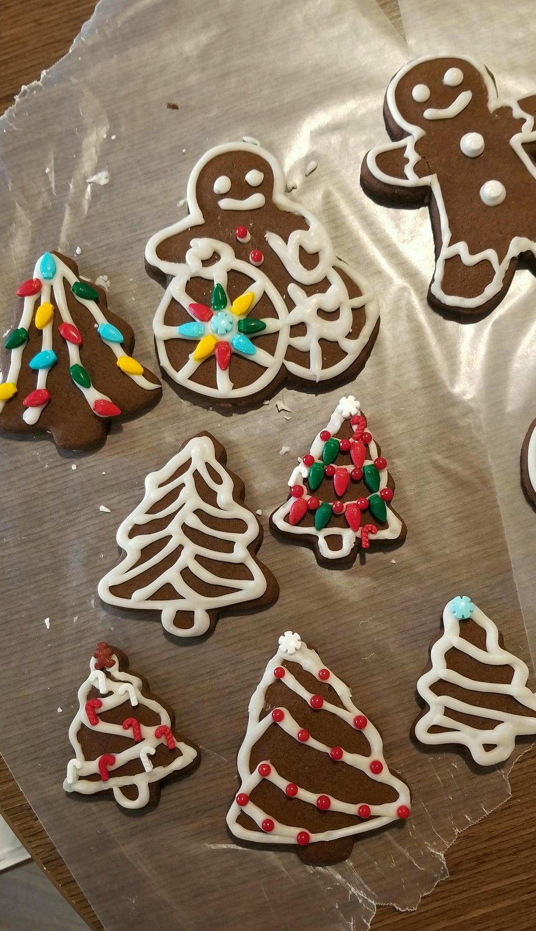 after all that hubbub about molasses (whew, you guys really went at it there) I finally decorated the cookies last night (with help from the gf) and I think they turned out cute! not perfect by any means but we had fun and I think the recipients will appreciate the effort of making wheelchair gingerbread guys. and yes, they taste good.