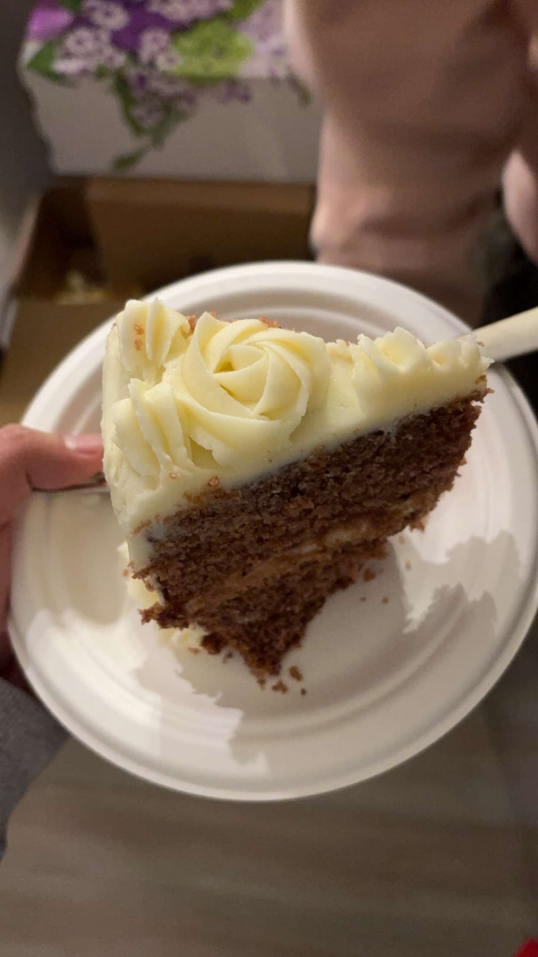 It’s ‘natural velvet cake’. No artificial dyes. Looks great. I would have guessed carrot cake or spice cake if you hadn’t specified. Buttercream is on point.