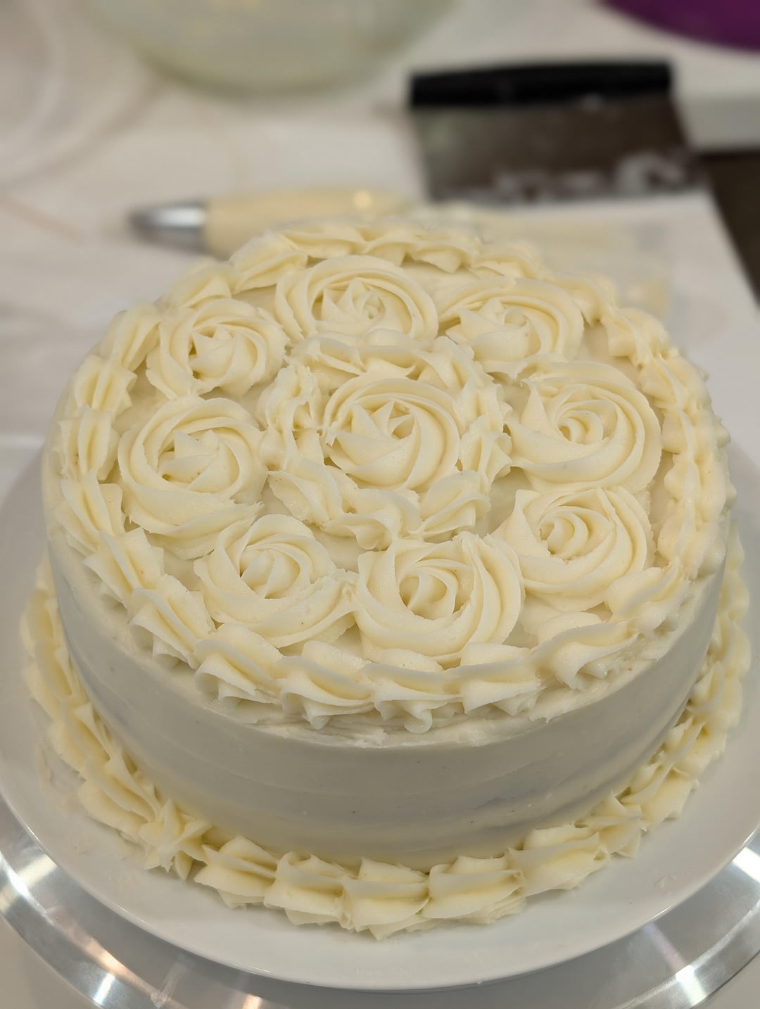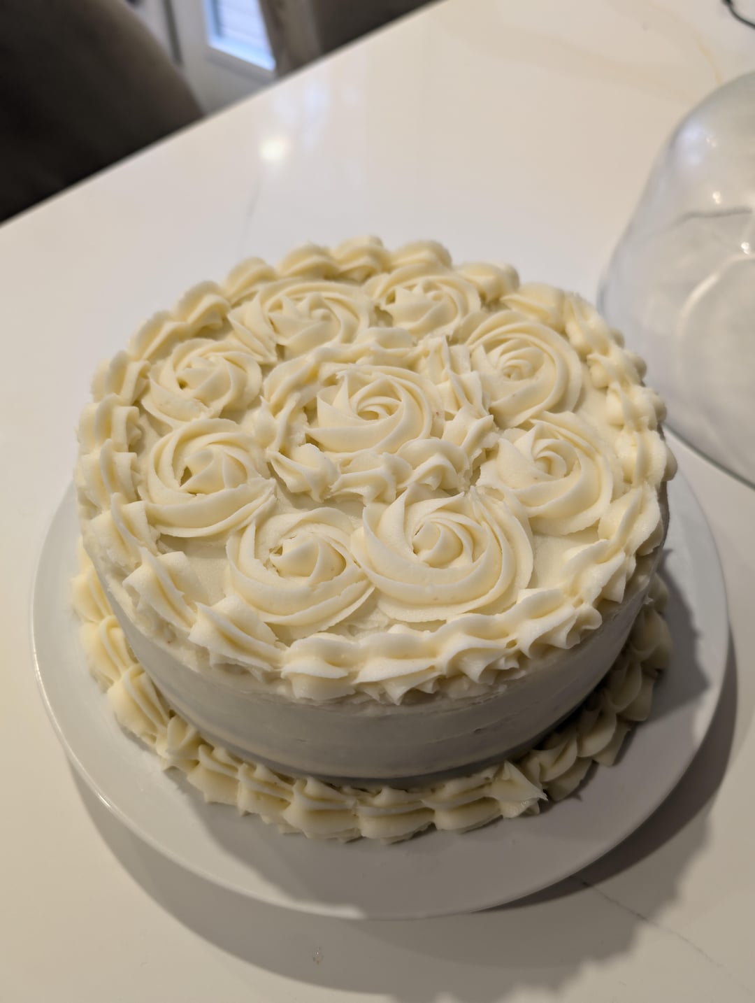 It doesn’t look like a wedding cake to me. Just a lovely cake with white frosting.