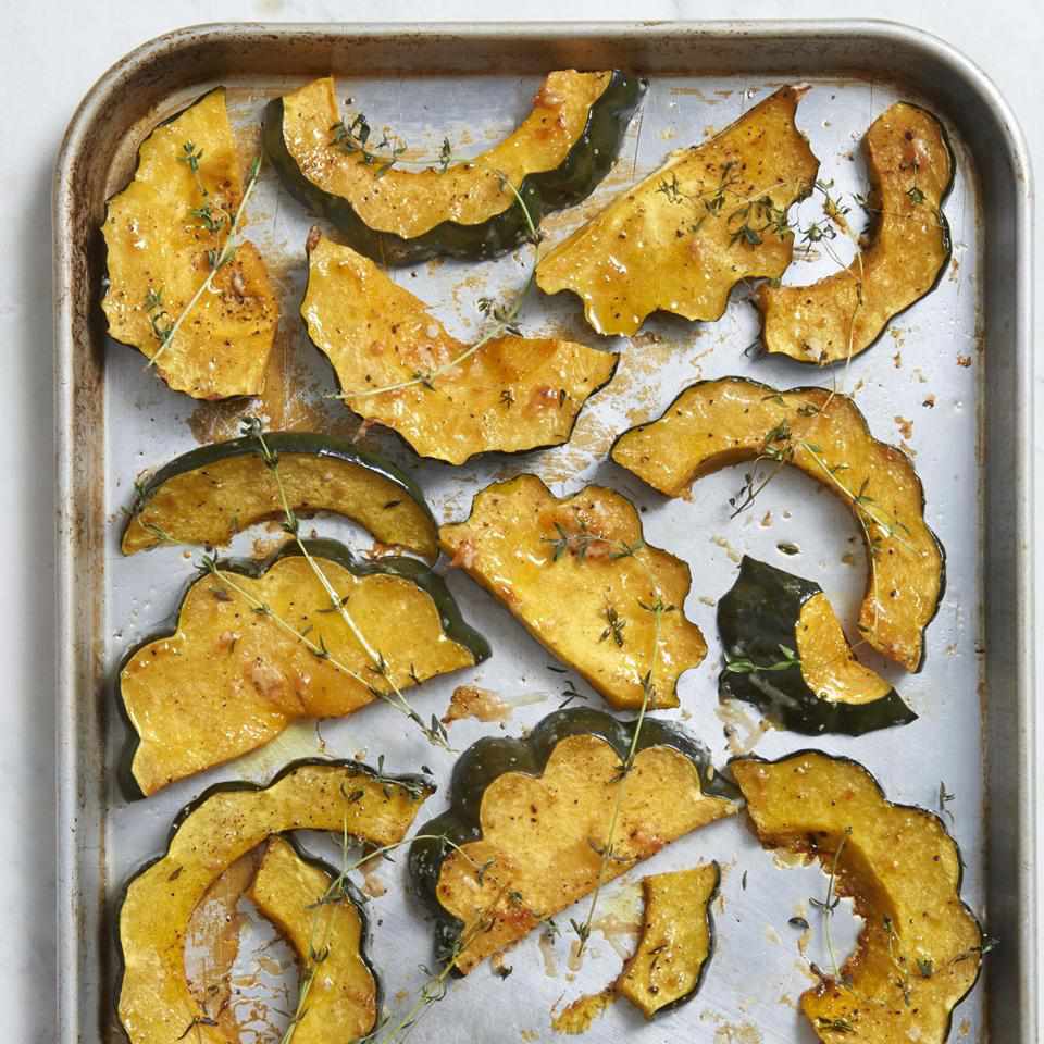 Acorn squash is often overlooked, but it makes an excellent alternative to all the sugary squash and sweet potato recipes you usually have this time of year. Here it’s roasted simply with Parmesan cheese and fresh thyme.