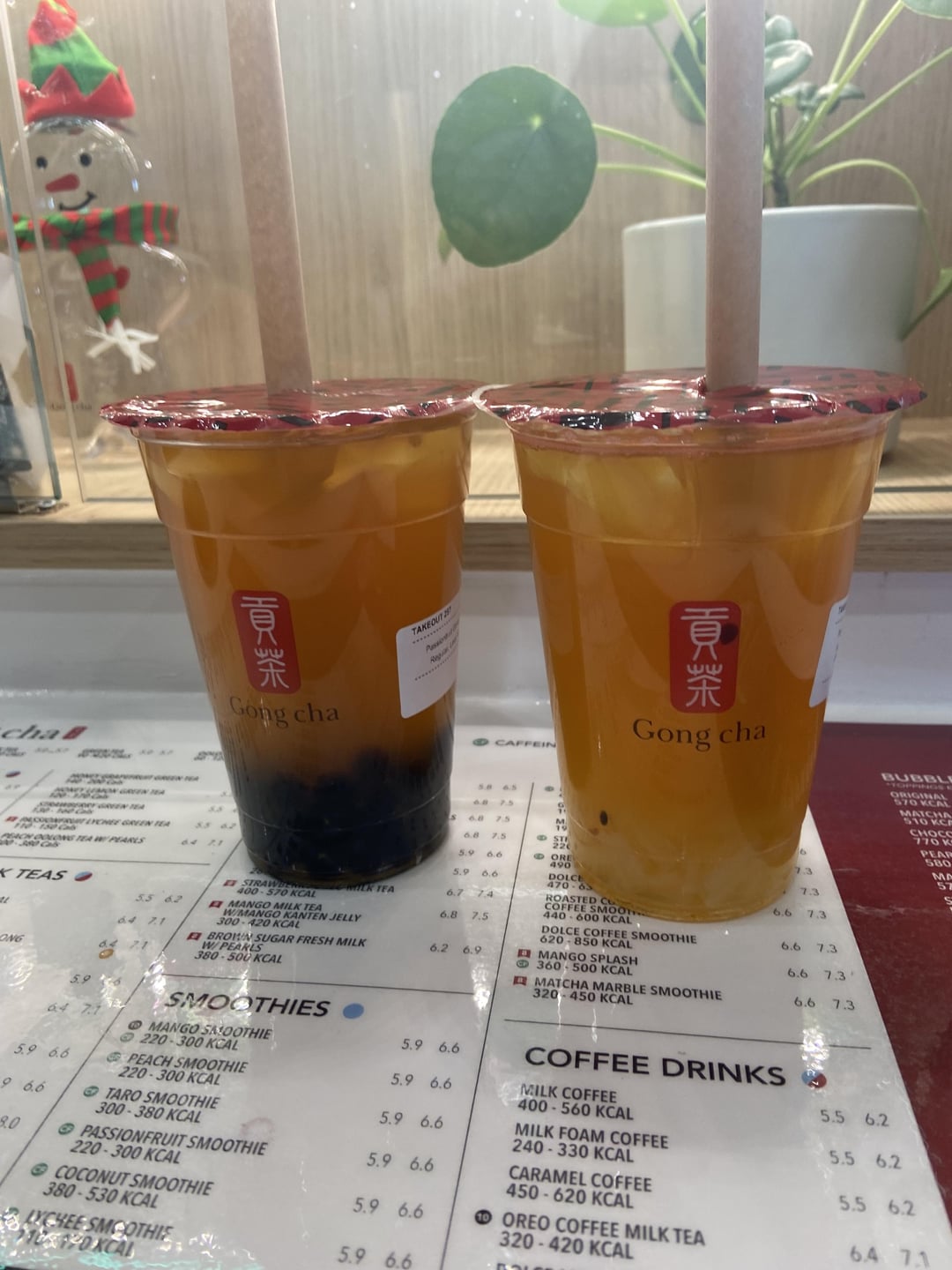 How many cals for one slice of pizza. It was from Gino’s pizza and I’m pretty sure they were Large pizzas. Also cal estimate for the bubble tea (the one on the left) its passion fruit green tea with pearls from gong cha.
