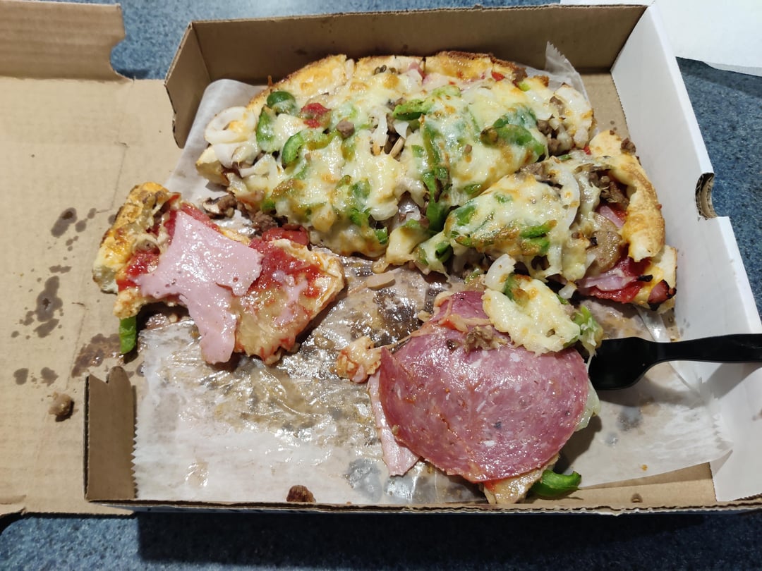 I had 2 slices of this before throwing the rest in the trash. I took these photos 3 years ago but I remember the experience like it was yesterday. I am posting this now because I just found this subreddit. Thanks for letting me trauma dump on you all.