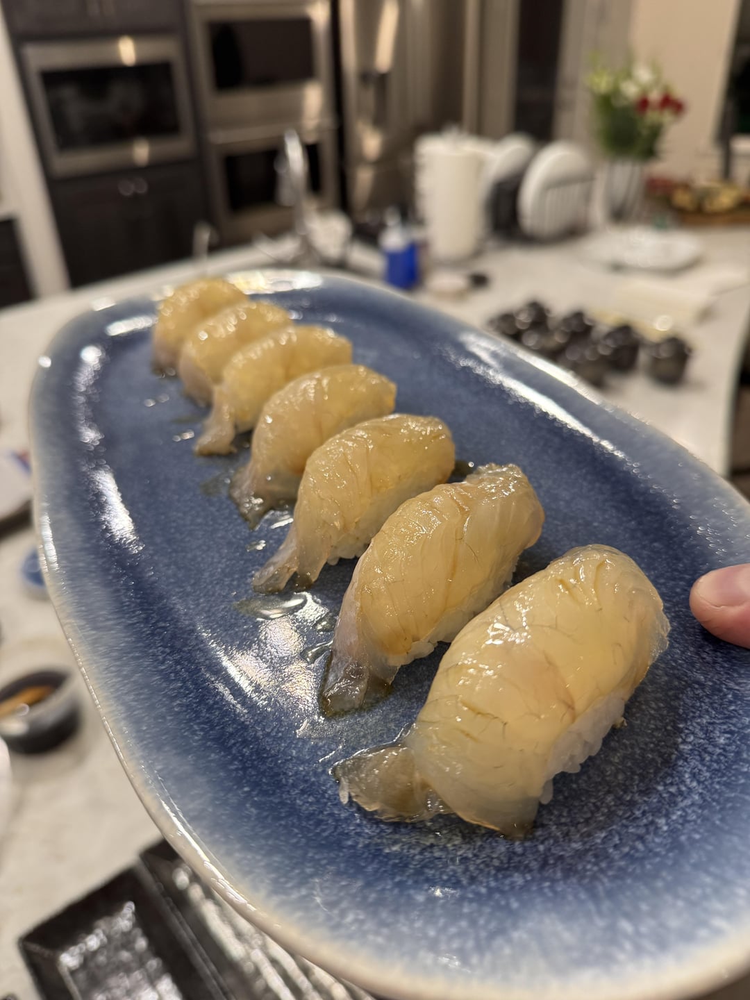 And for those wondering, no I normally do not plate multiple pieces of nigiri like that, but these people needed plates they could eat multiple bites of whole running around being drunk and doing Christmas stuff.
