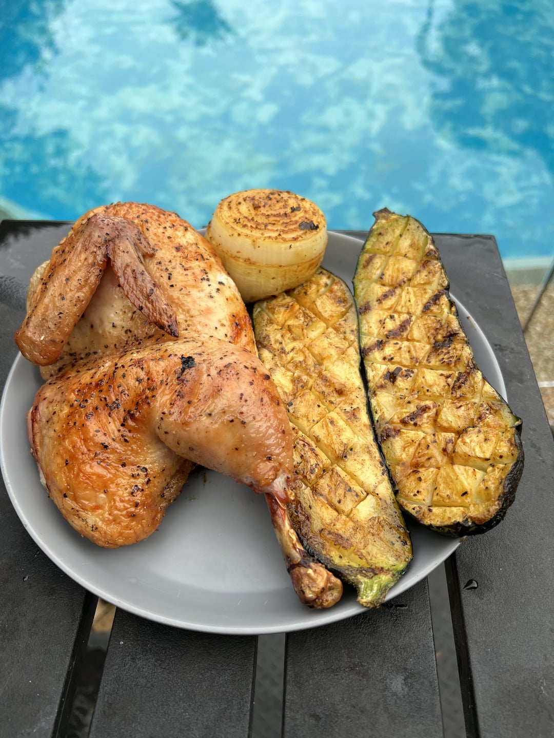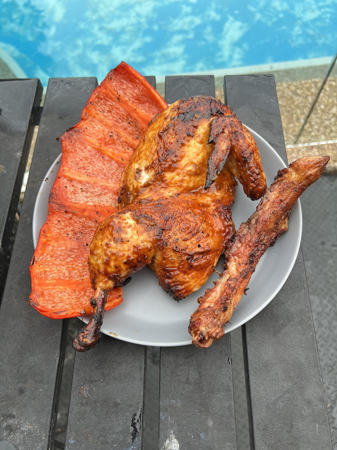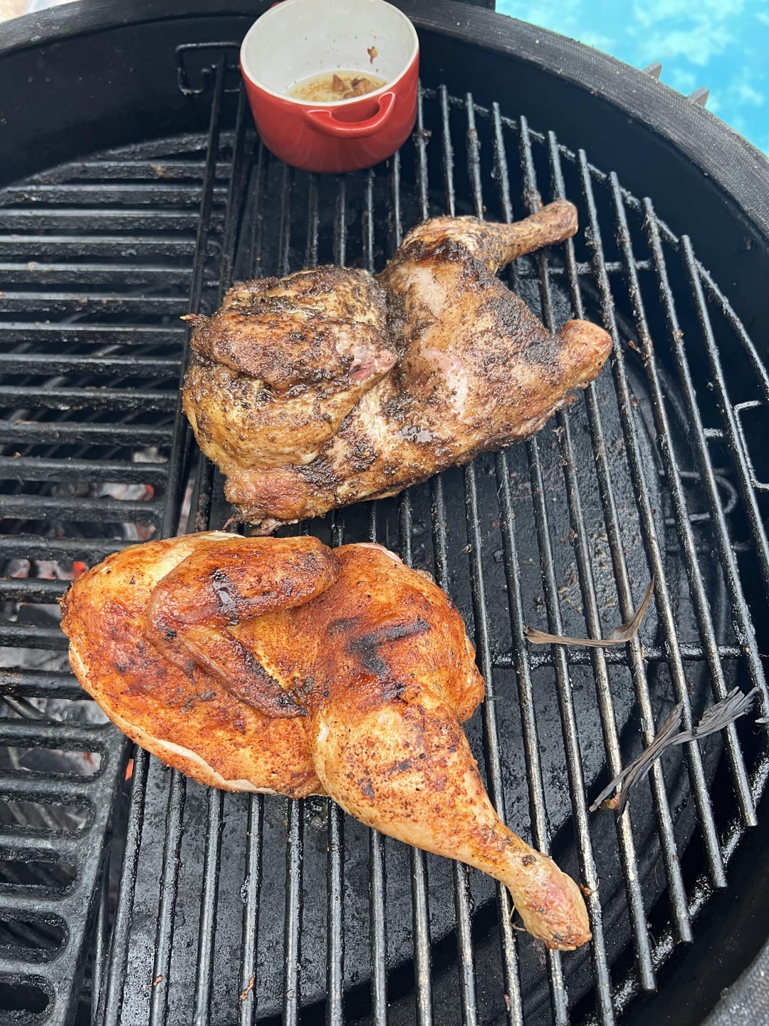 Your half chicken looks like a pirate with a wooden leg that got burnt during the session and is now left with on leg.