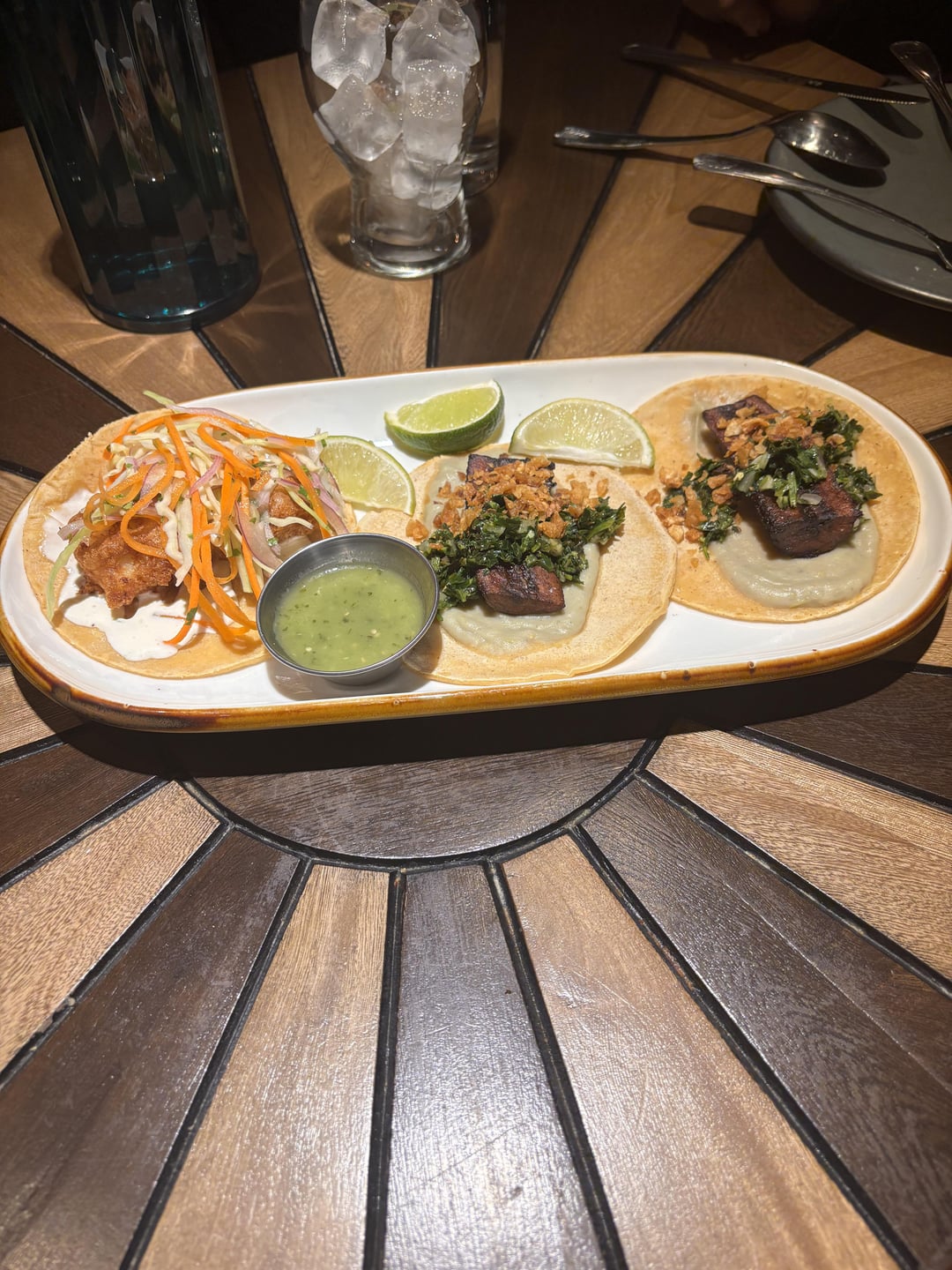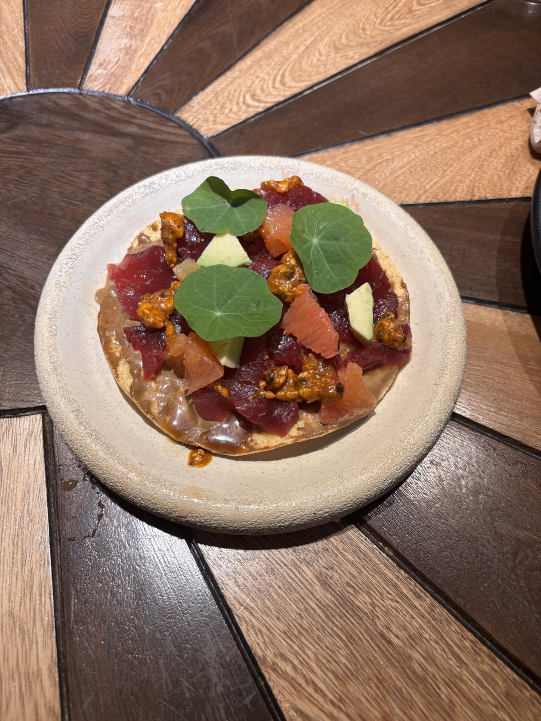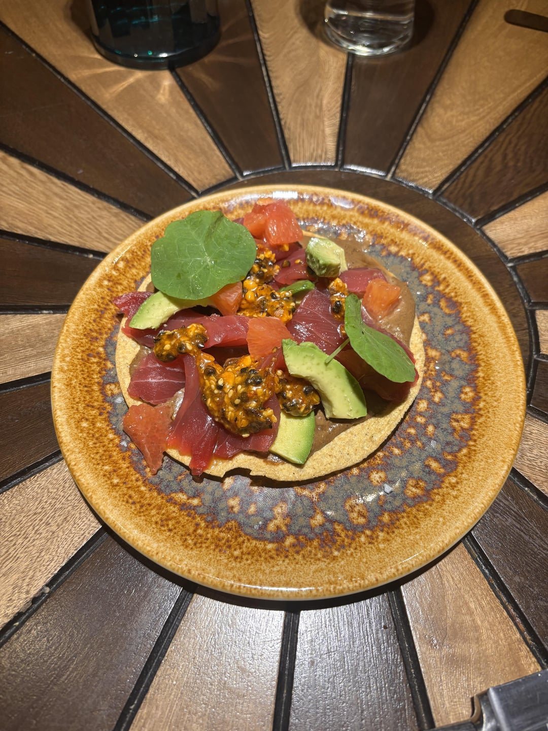 I have ate at many omakase around the world, this was one of the freshest tunas i have ever put in my mouth. DEFINITELY in my top 5 list of appetizers in the city. The creativity of that tostada is out of this world. This was my second favorite thing we ordered. The oysters are super fresh as well and paired great with the passion fruit mignonette. Cactel, Baja Fish taco, and oyster taco were great as well, but the plantain taco was AMAZING. Definitely the tastiest plantain I have had and it was accompanied by the most perfect sauce and topping (I forgot what it was). However my favorite dish of the brunch was the Red Snapper Pozole Verde topped with crispy fish skin. It was just so perfect and the fish was lovely. After eating at their brunch, we immediately decided we would come back for dinner the next day