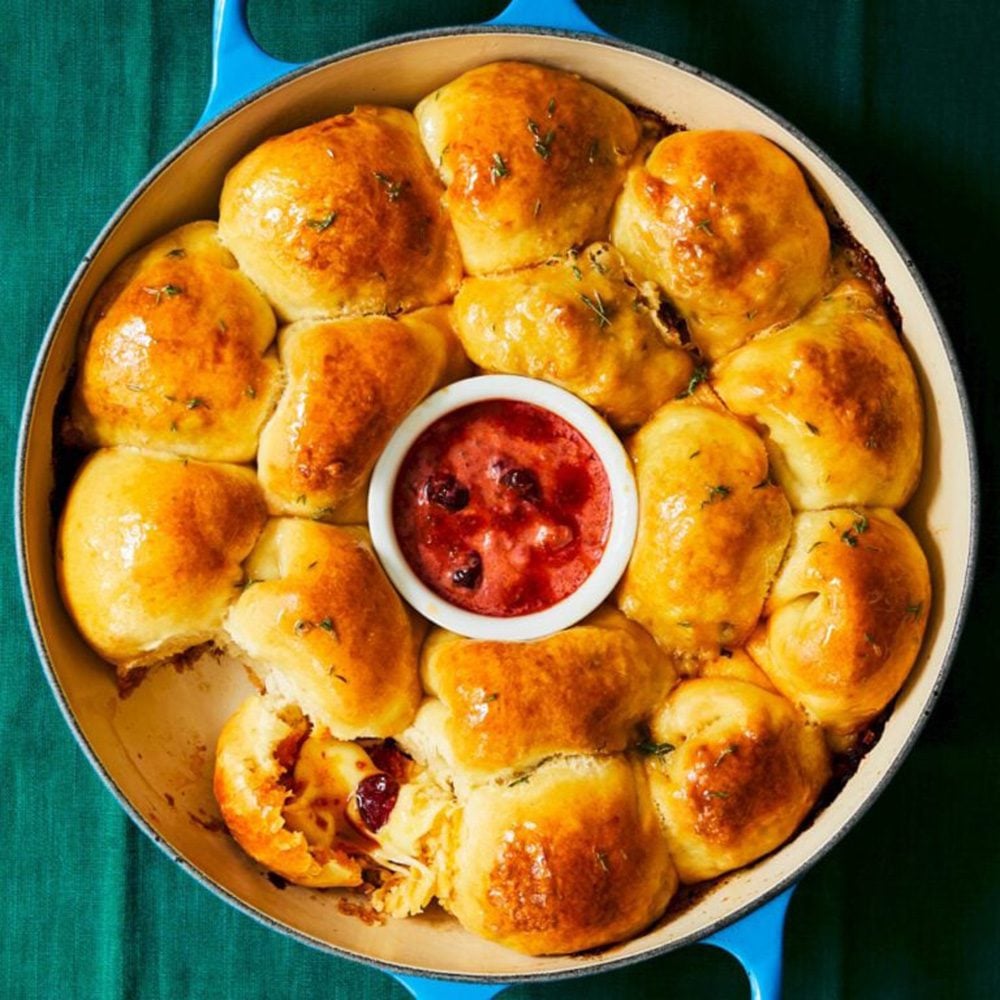 This savoury wreath is begging to be the star of your party table. The golden doughballs are stuffed with sausage, cheese, fennel seeds and cranberries, then served with a rich ‘nduja and cranberry dip. It’s Christmassy, it’s unapologetically extra.. .and your guests are going to love it.