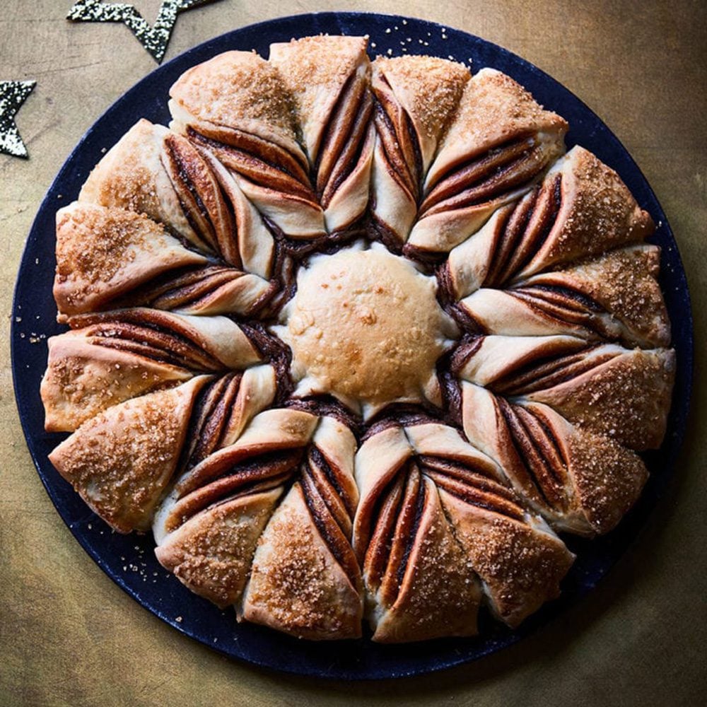 The pillowy dough of this Christmas star is filled with a rich Nutella and tahini filling. Making the star takes a bit of concentration, so this is a recipe for those December days when you want some time to yourself in the kitchen with some carols on the radio. The results are well worth the effort.