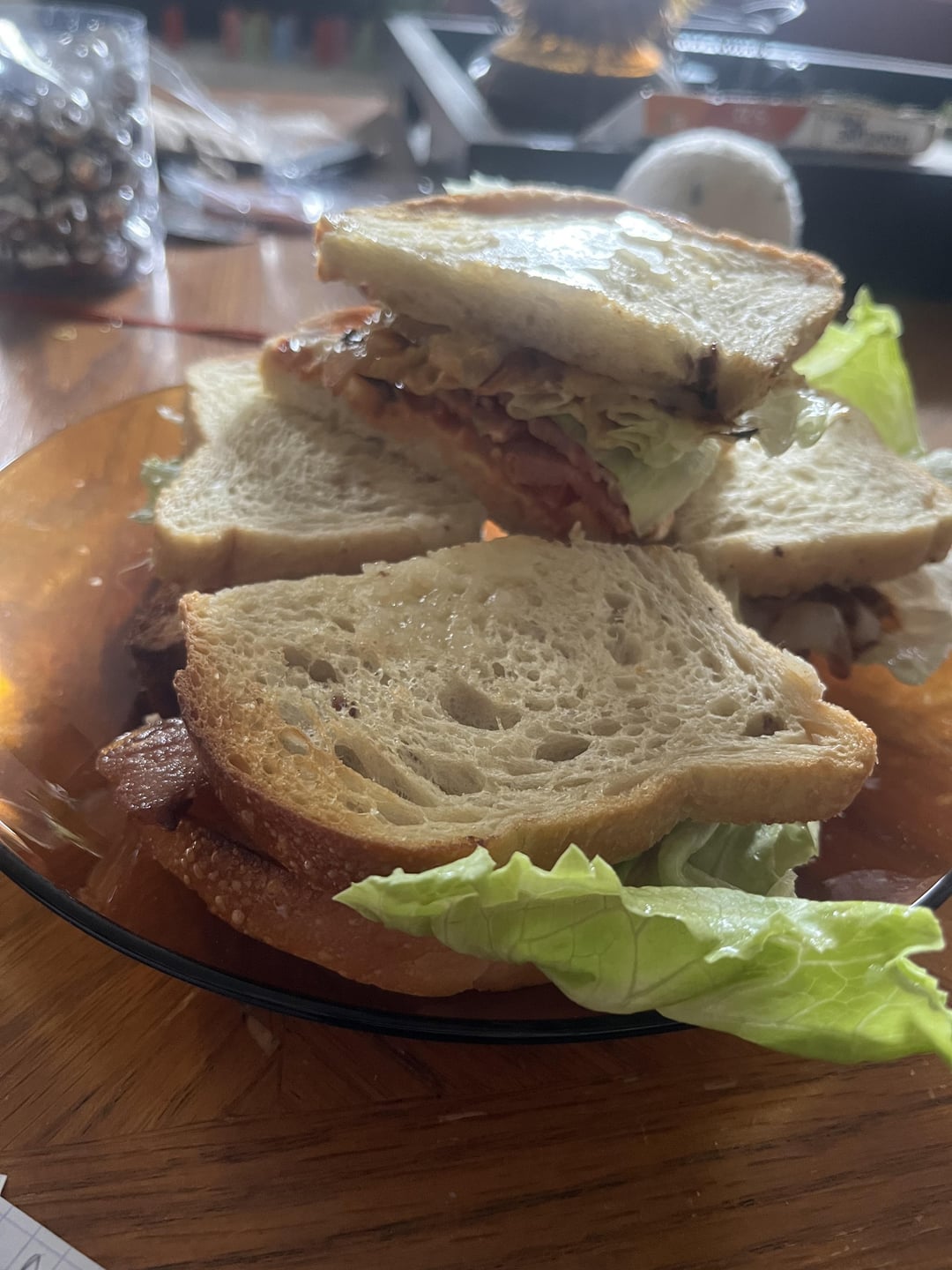 Sourdough, some home grown tomato’s, mayo, mustard, grilled onions, balsamic glaze, lettuce, pepper and salt and a tince of oil by blacklabel7 2 Comments mtheory007 11 months ago A nice BLT is so nice sometimes. Experimentallyintoit 11 months ago Where are you located? Homegrown tomato season where I am is nothing more than a dream!Write A CommentYou must be logged in to post a comment.
