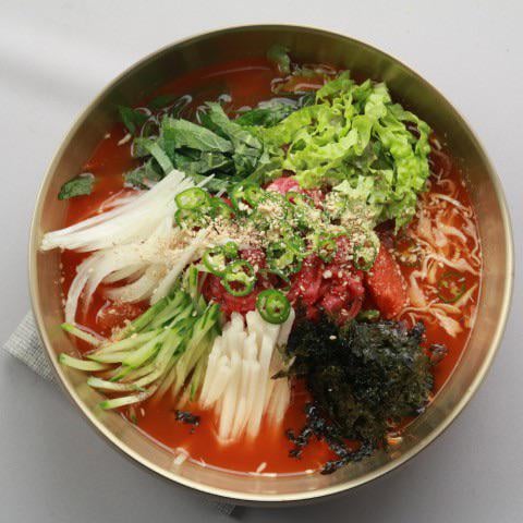 This is something that probably no one here has had unless you’re Korean. I’ve not even found a place in LA that serves this. In Seoul there are places that only serve this. It’s so good. Sashimi and veggies in a tangy ice chunky soup, refreshing and addictive. I miss it so much!