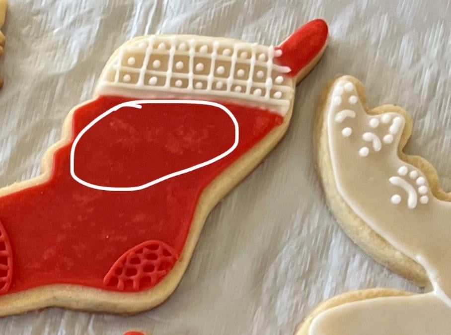 I only make cookies once a year during Christmas for fun and I use the Sally’s baking addiction sugar cookie and royal icing recipe but always have this issue. After baking, the surface of the cookie is kind of flaky and crumbly so then when I do flooding you can see what’s flaked off.