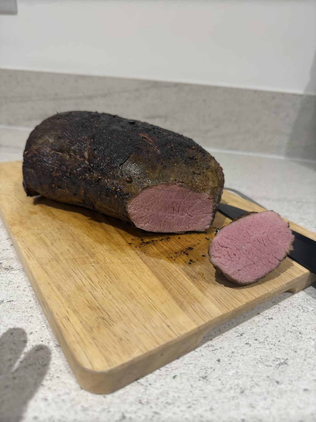Sous vide beef roasting joint at 59c for 24 hours. Really tender but a tad dry for me. Next time I’ll go 56c for 24 hours.Family enjoyed it.by LordDooter 4 Comments chigurh_callit 1 year ago Great job! rob71788 1 year ago Did you use a torch to sear it? Crasswanker 1 year ago Looks boiled, how did it taste? Lanky-Landscape-844 1 year ago Thats looks great. Have you added any fats while sousviding, i found that really helps with the moistureWrite A CommentYou must be logged in to post a comment.