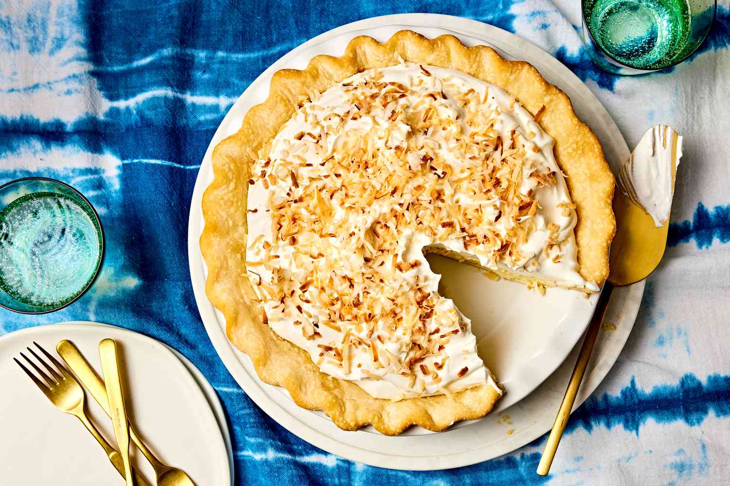 Save the best for last. A simple piecrust is filled with creamy coconut custard and topped with pillowy whipped cream, and topped with toasted shredded coconut.