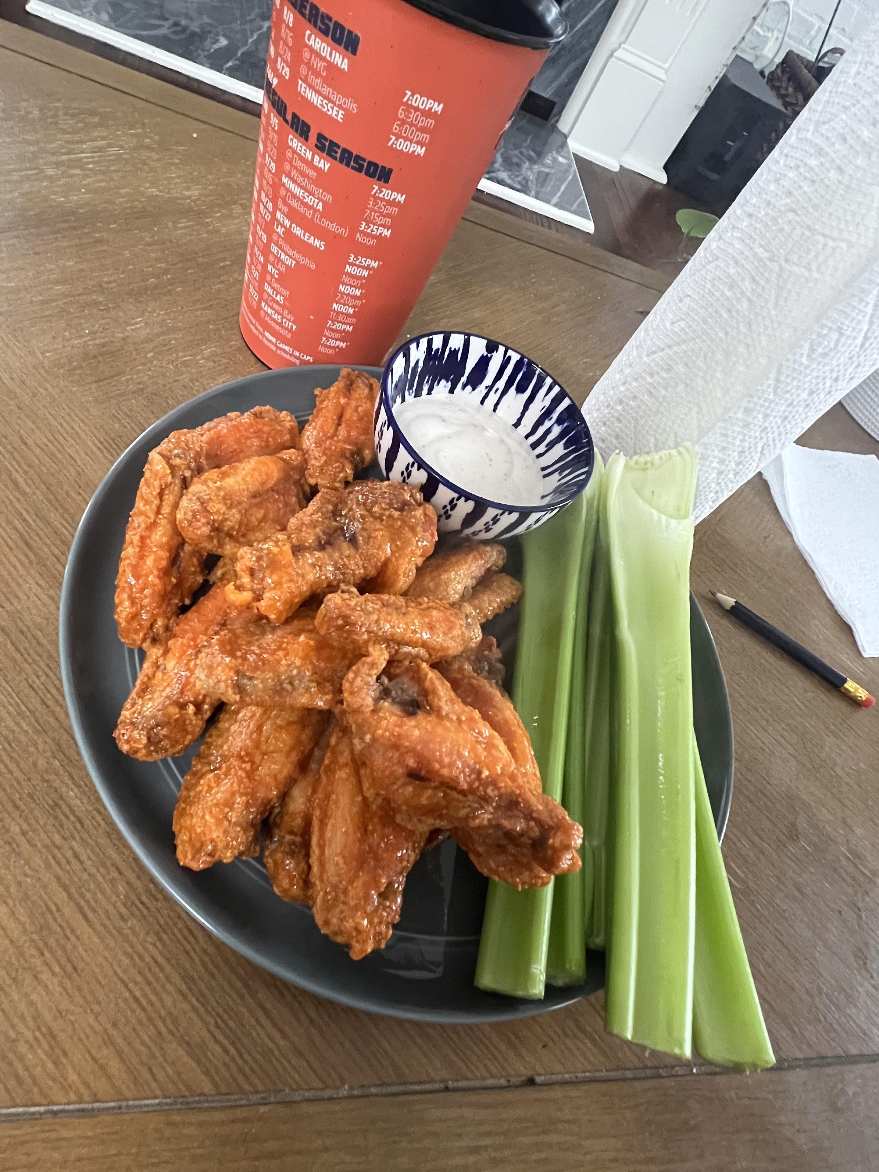 Rested on a wire rack in the fridge for 24 hours with Teaspoon per lb of wings of baking powder, corn starch and salt Bake 450 for 45 minutes, flipping once Recipe from serious eatsby dabears232233 1 Comment osmosisparrot 10 months ago Do you use reg baking powder or aluminum free?Write A CommentYou must be logged in to post a comment.