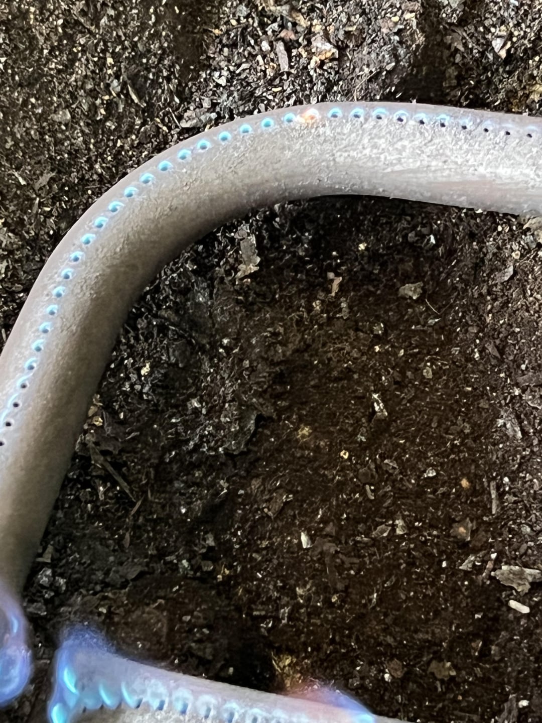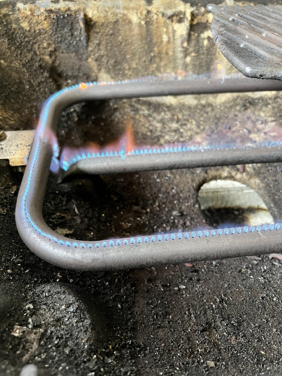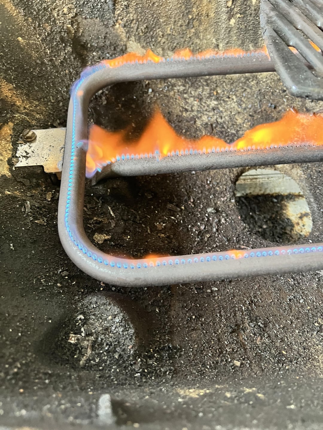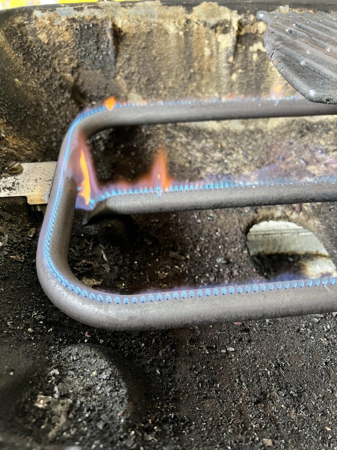 I was trying to clean up my Q3200 and now the flames have a lot of orange in them. I can smack the burner tube and make them go back to blue. What’s causing this?
