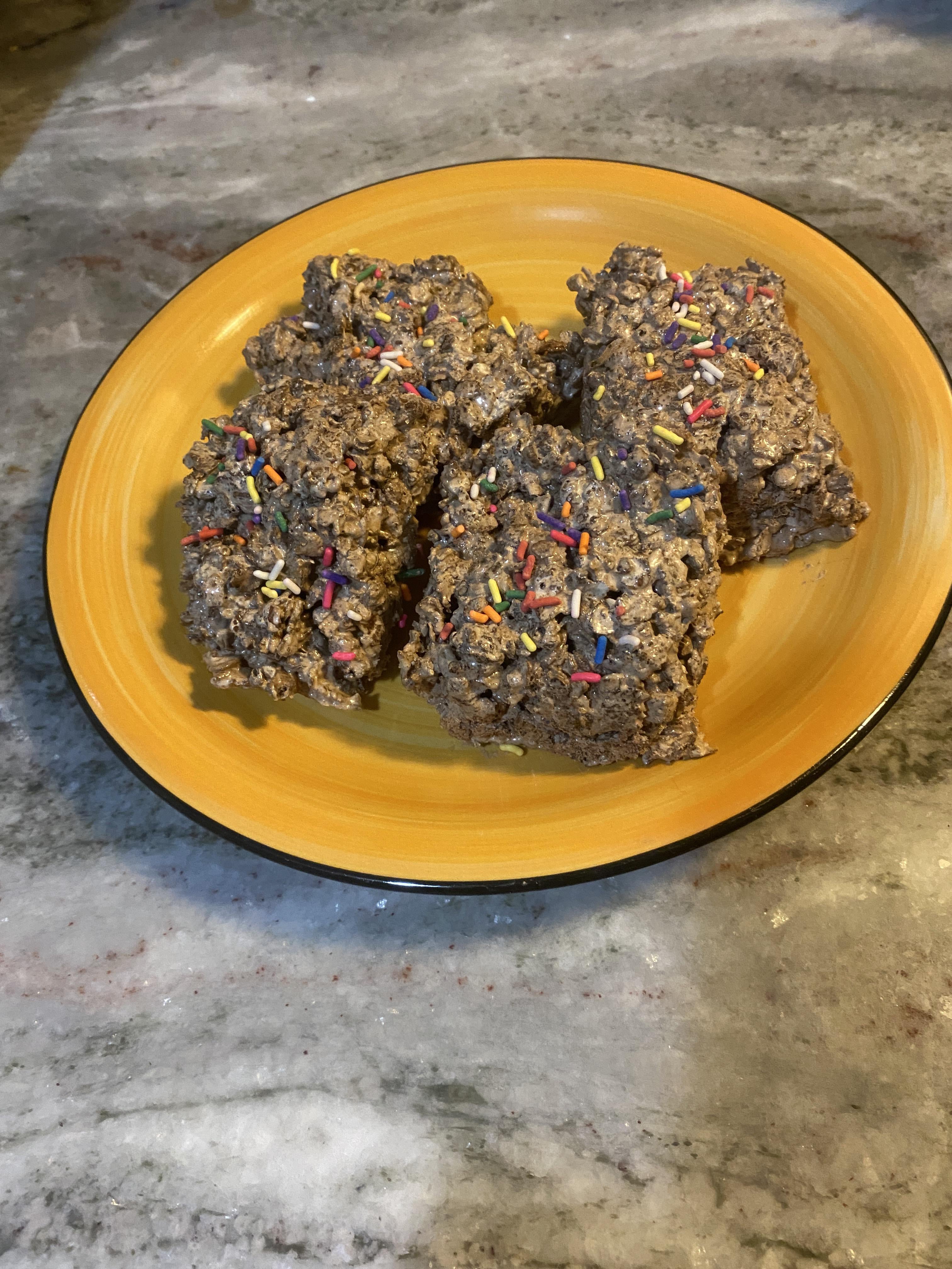 Ingredients :-Cocoa pebbles cereal -Nutella -Butter -Light brown sugar -Cinnamon sugar -Granola -Chocolate syrup -Marshmallow fluff -Rainbow sprinklesby Coolaidhippy 1 Comment Rachel794 10 months ago Very sweet! But awesome Write A CommentYou must be logged in to post a comment.