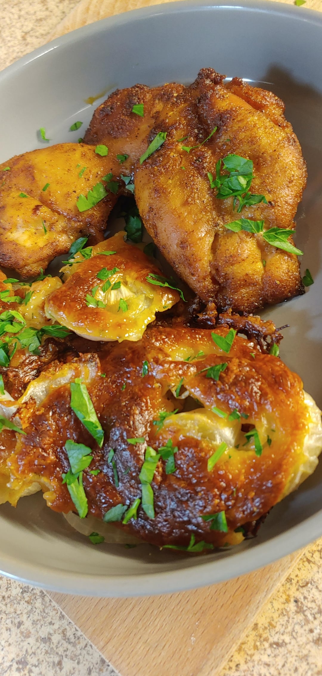 Highly recommend making some for yourself.by cassette1987 5 Comments JuneJabber 11 months ago They turned out great! bearicorn 11 months ago Neeeeed DamianLee666 11 months ago I love chicken thighs haha looks delicious knightdusoleil 11 months ago What are Tennessee onions?? They look incredible OpulentZilf 11 months ago Looks so good! I bet it would be great cooked with ghee, balsamic vinegar, truffle cheese, and fresh parsley, served on some olive oiled cloud bread.What is that leafy garnish you used?Write A CommentYou must be logged in to post a comment.