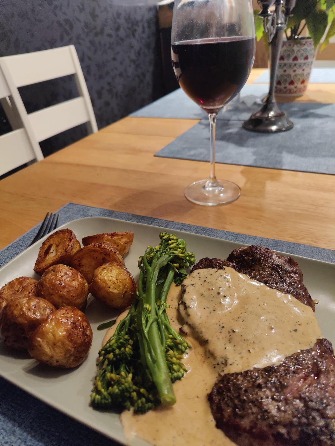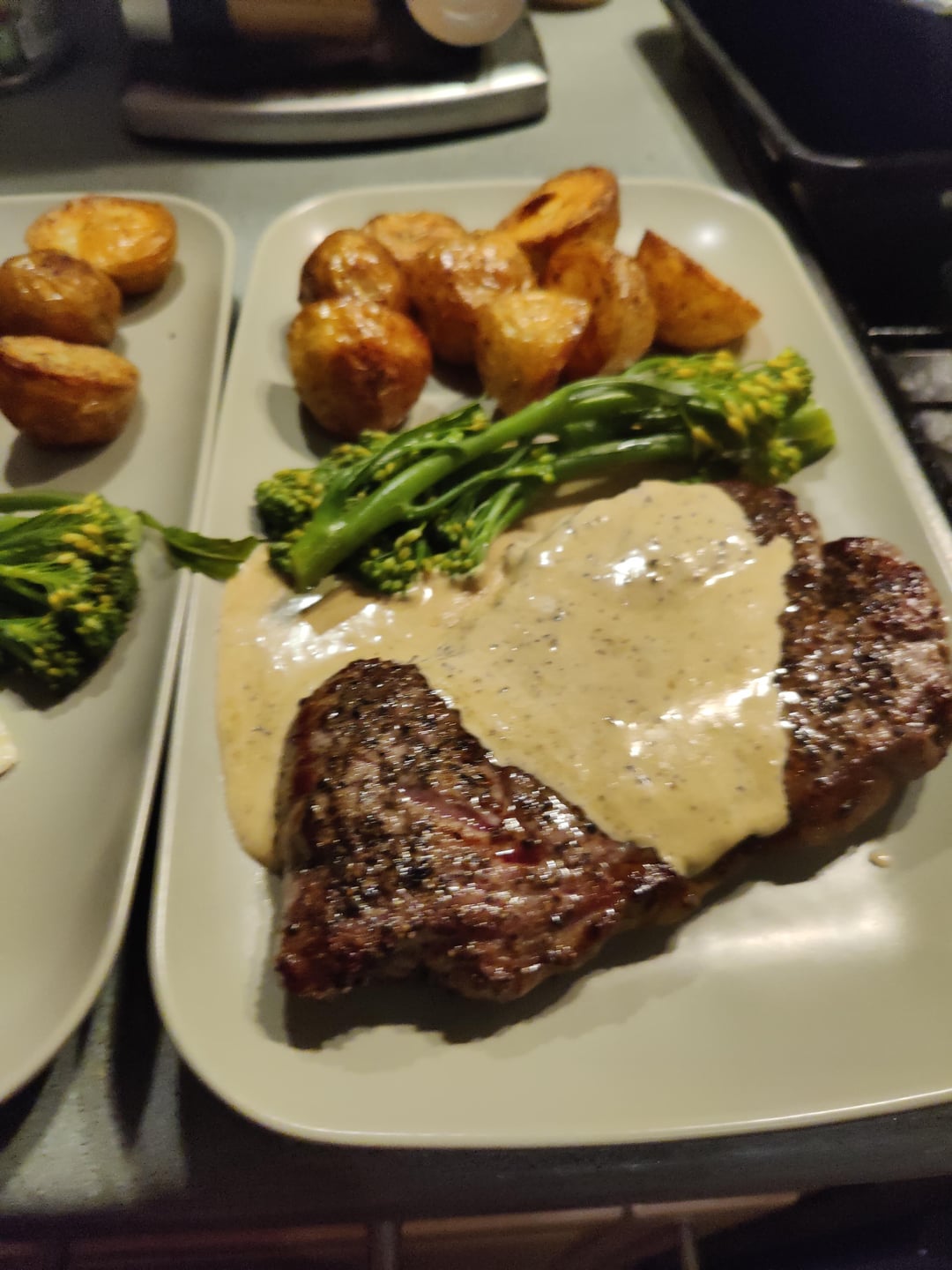 I wanted steak and peppercorn sauce. My girlfriend wanted salmon cooked in butter. We both agreed on the broccoli and roasted new potatoes.by tobotic Write A CommentYou must be logged in to post a comment.