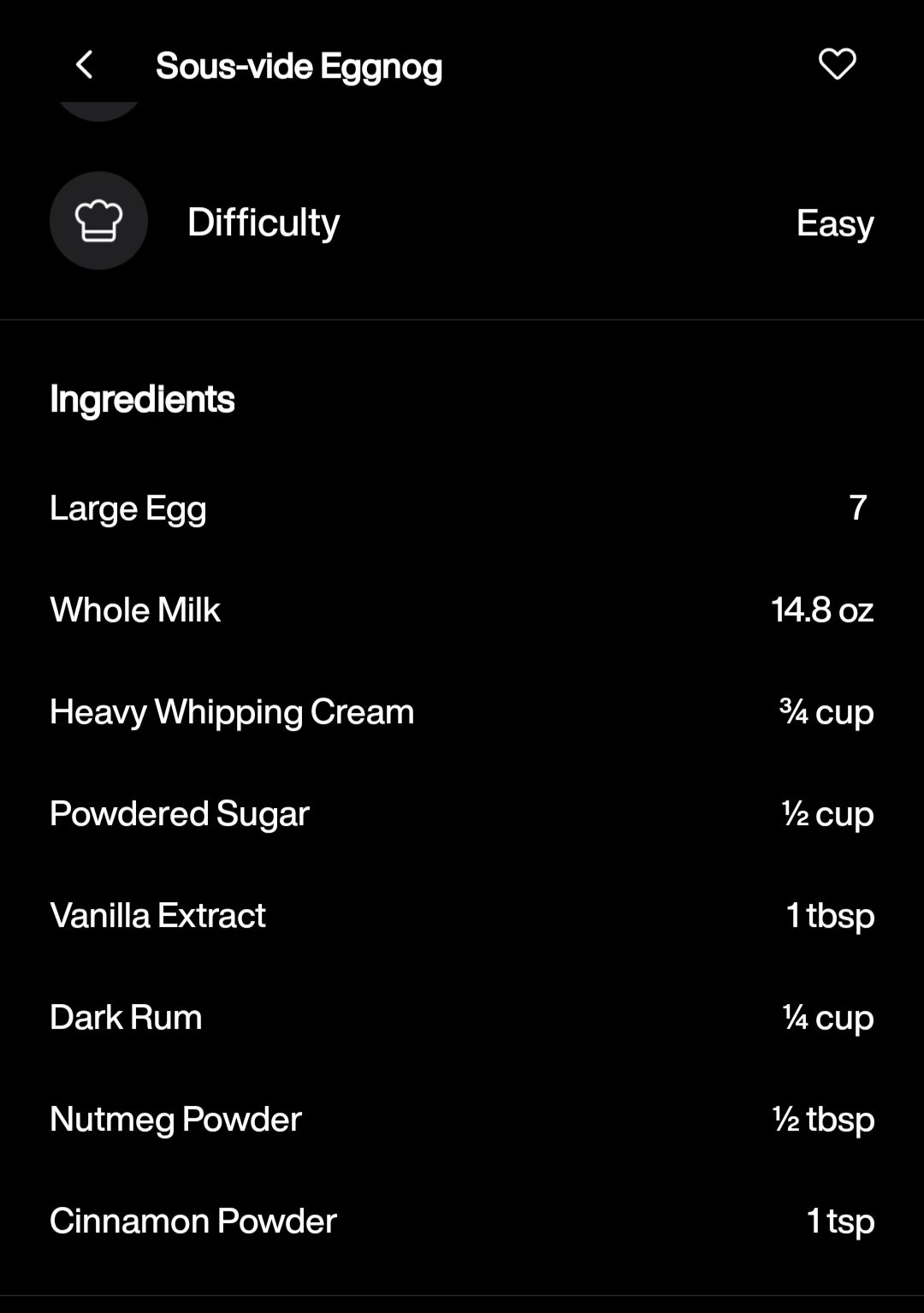 I didn’t question any of this as I started going down the list, but when I got to the vanilla I started to think that ¼ cup of vanilla was more vanilla than I ever remember adding to anything, but hey, I’ve never made eggnog before… Then I got to the cinnamon and realized I had a problem. The measurement for cinnamon just said “7” which didn’t make sense. Before I started, I made sure I had enough of each ingredient, and that “7” would have stuck out to me before. Typhur does have a really sweet app that can connect to the sous vide station and also allows you to look up the same recipes, so I decided to look the same recipe up there – as that’s what I used for my shopping list at the store. The recipe there called for: