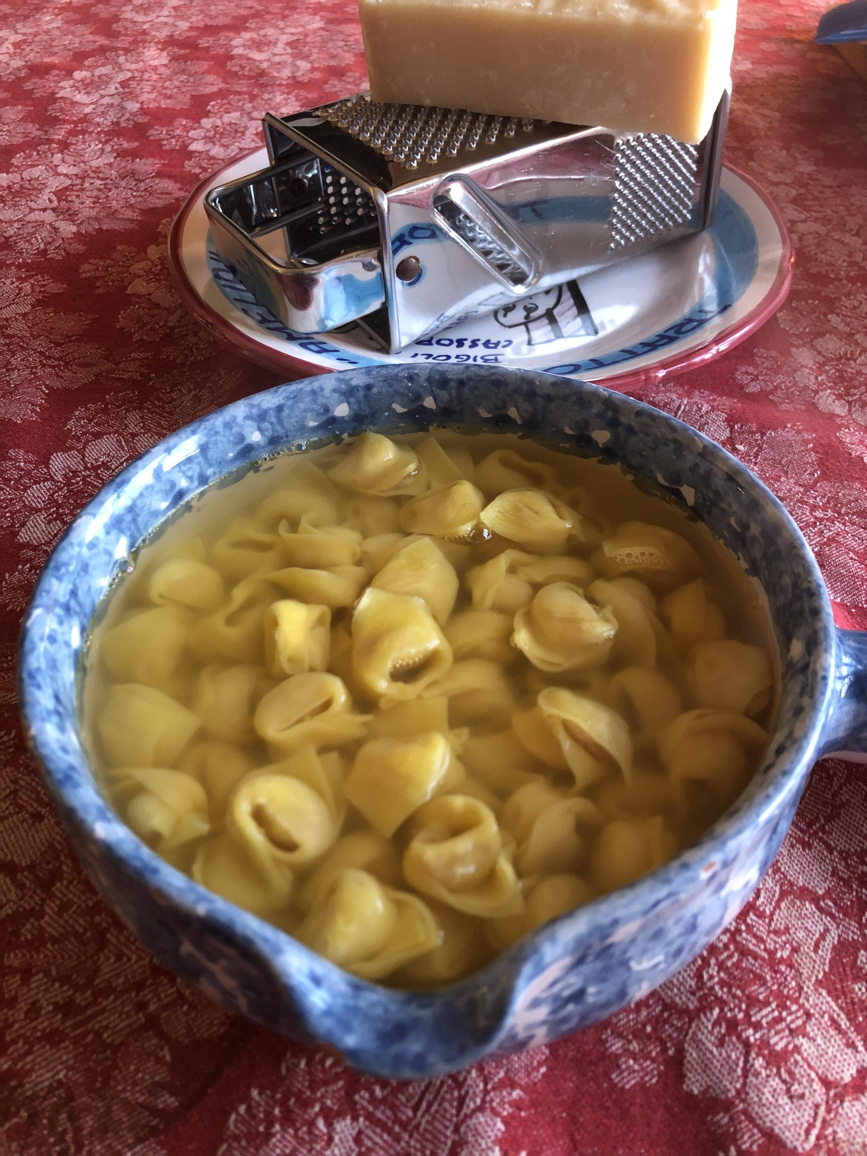 Have the flu today so tortellini in brodo. For the broth: parsley (leaves & stalks), 3 celery stalks, 1 big tomato, 1 potato, 1 onion and 1 carrot. Let it boil for at least 1 hour starting in 2 litres of cold water. Adjust with one spoon of salt. Went to the bakery for fresh tortellini but the nonnas had already ravage the place, so headed to the supermarket and got a pack of Soderini, not that bad for a commercial brand. Add parmigiano e buon appetito!