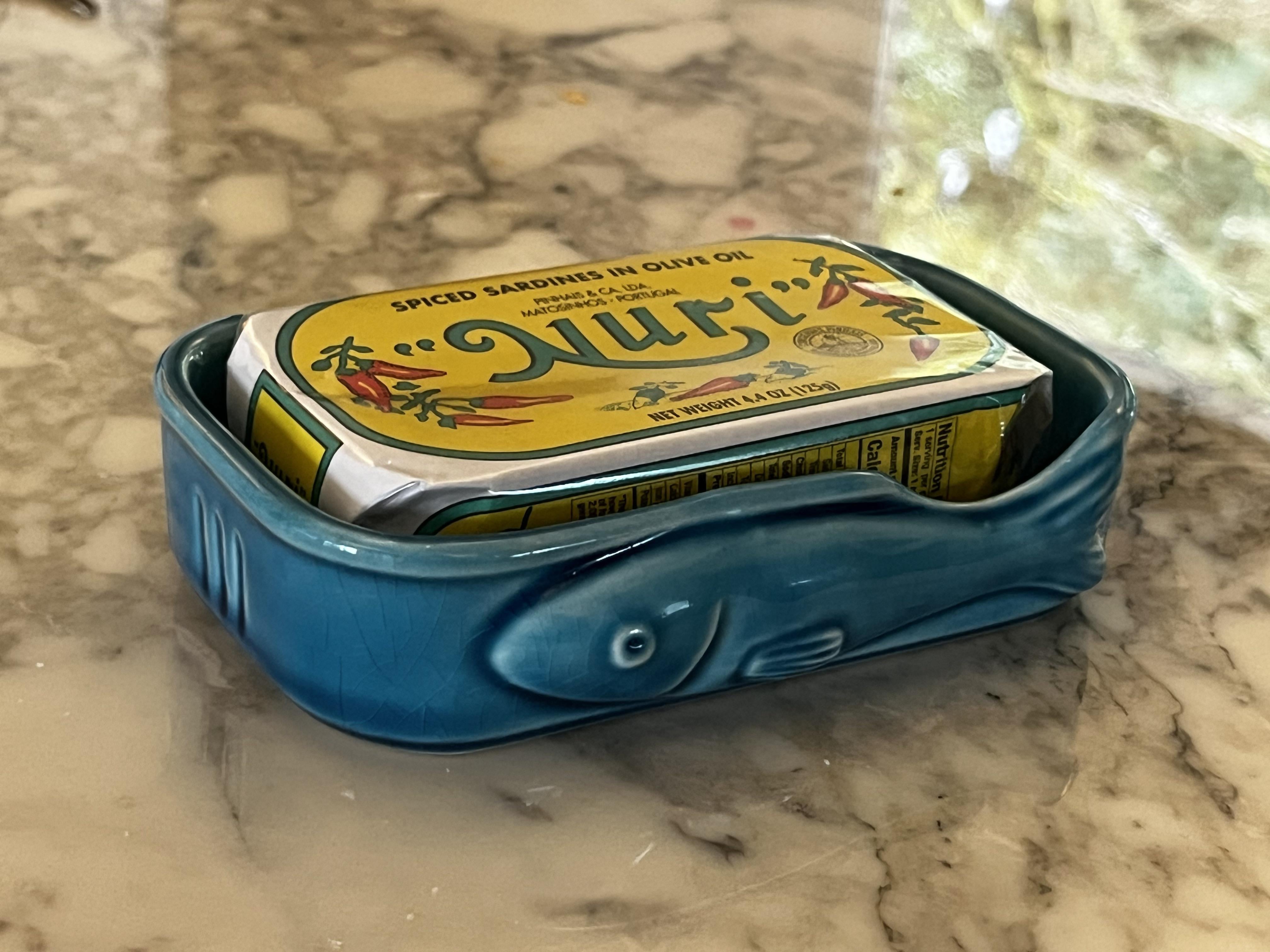 I have two of these, including one in that color. The blue glaze with the cracks its the nicest looking, IMO. Anyway, as someone who eats fish directly out of the tin, it really is a big upgrade to stick the tin in this. Especially if you’re doing it for a crowd. Then again, I’m the type of person who has a chopstick collection and might be picking his deens out of the dish with some $100 sticks of titanium, so I’m cut from a different cloth. YMMV