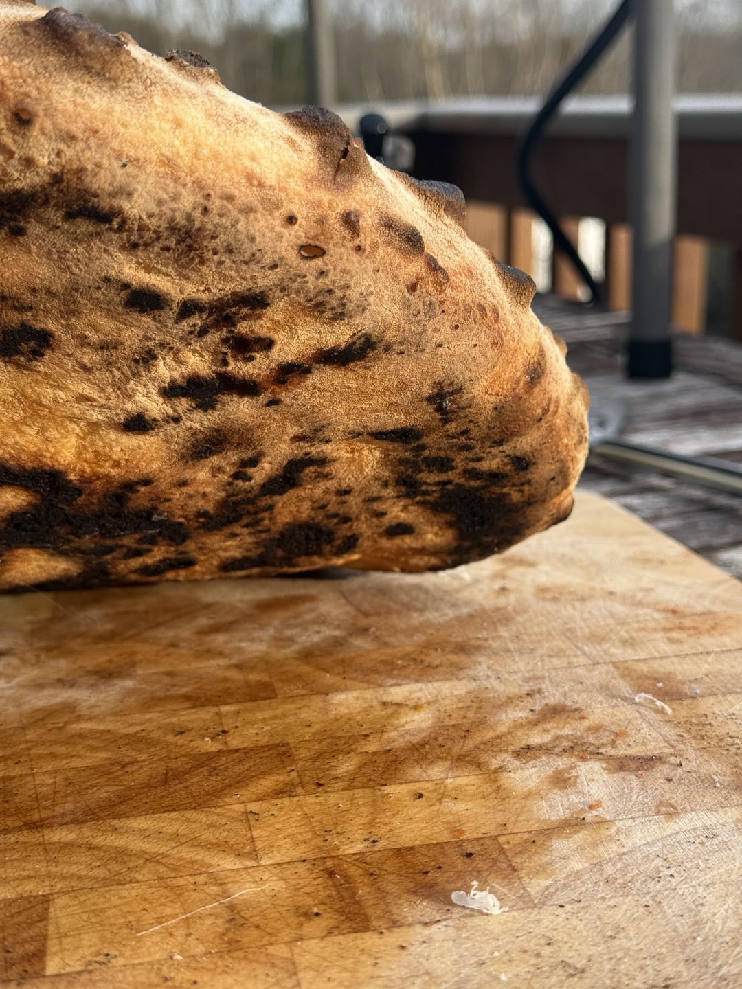 Under you have a bit of dark spots, do you use too much flour on your peel?