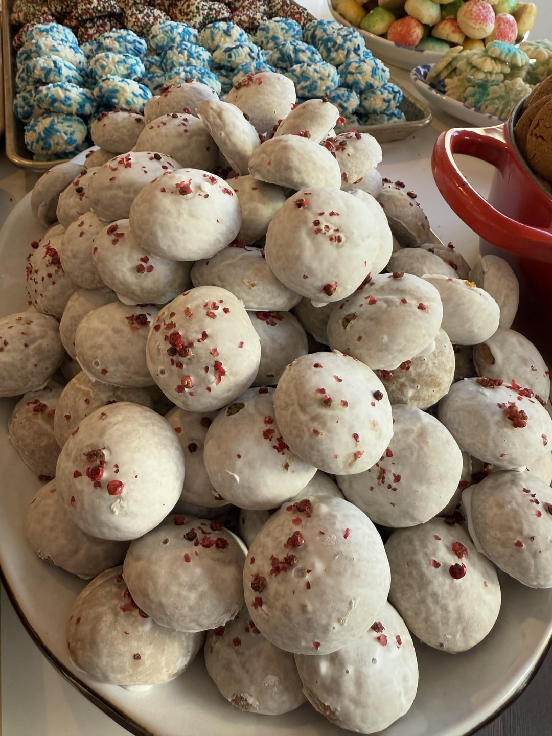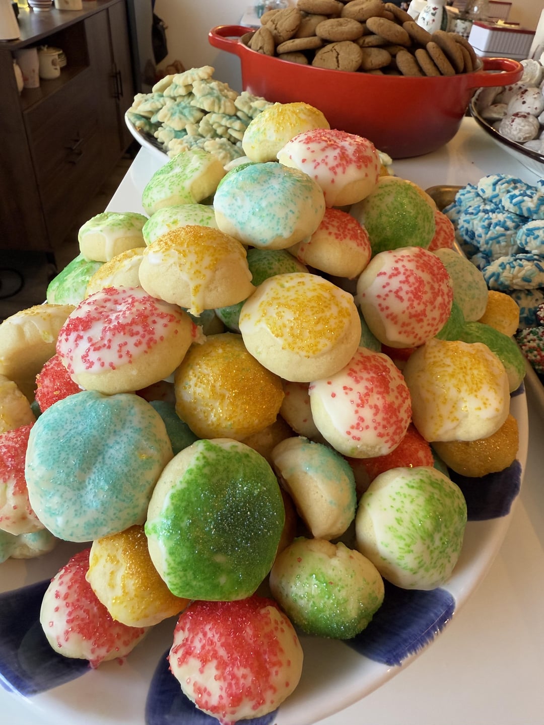 Every year I spend the first week of December doing Cookie Chaos: a week where I go nuts and bake a ton of cookies to give to family and friends instead of cheap gifts. This year there was 38 buckets, ten cookies and Italian strufoli. Total cookie count was 2,162 including the gluten free and sugar frees!