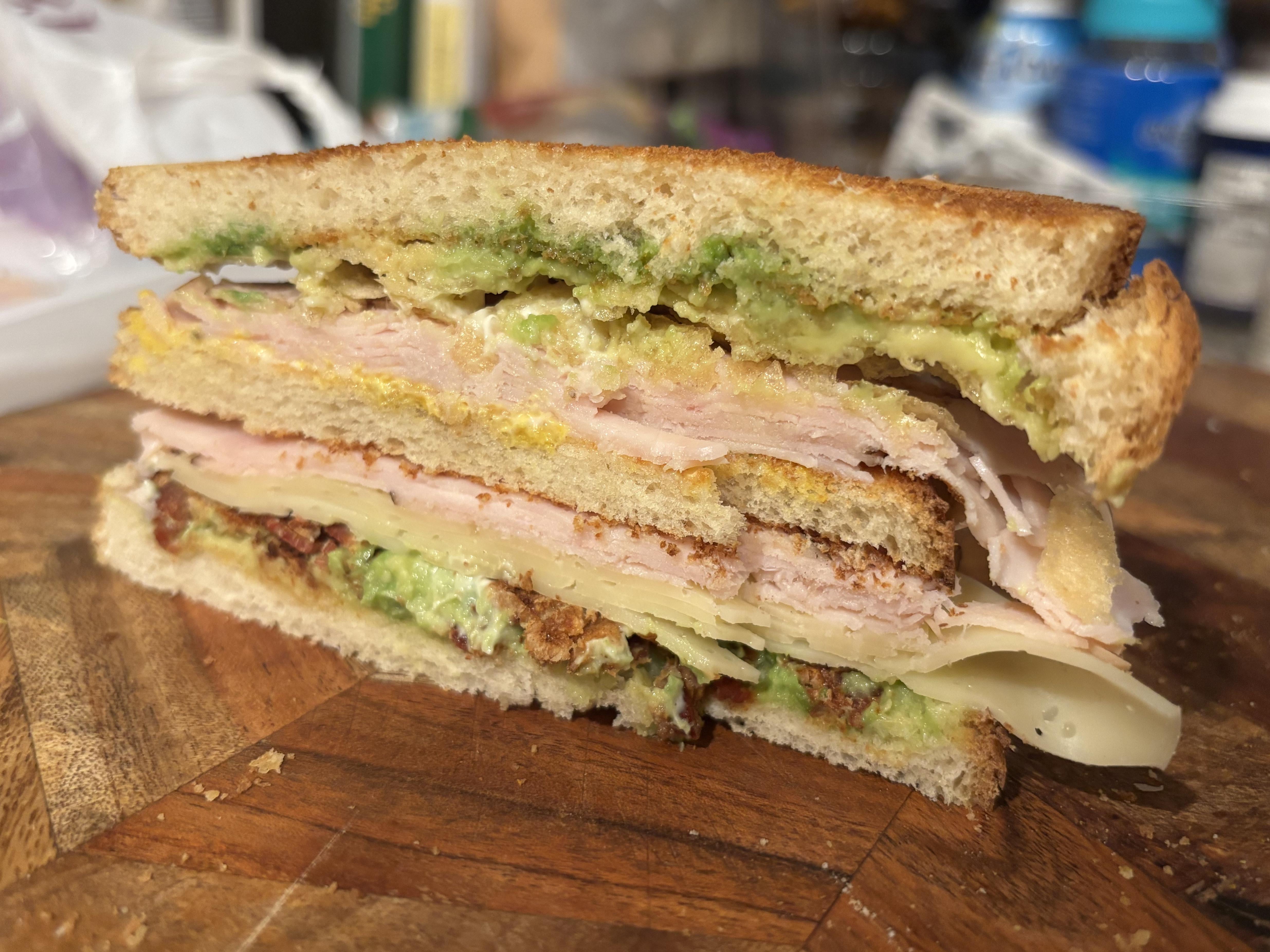 Anyway this is a turkey Swiss bacon avo & chips club.
