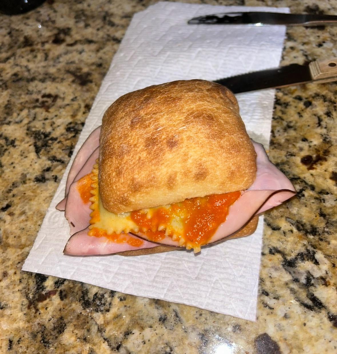 “Necessity is the mother of invention” I say to myself, as a scoop ravioli onto a sandwich