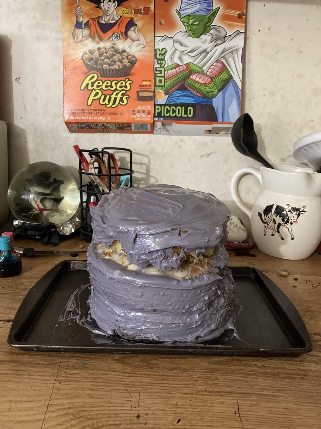 After that I started putting the frosting in the fridge to firm up. I it made a huge difference. I’ll also do a crumb coat, them put the cake in the fridge before dropping my final layer. I cried over the cake in the photo, but the kids all loved it.