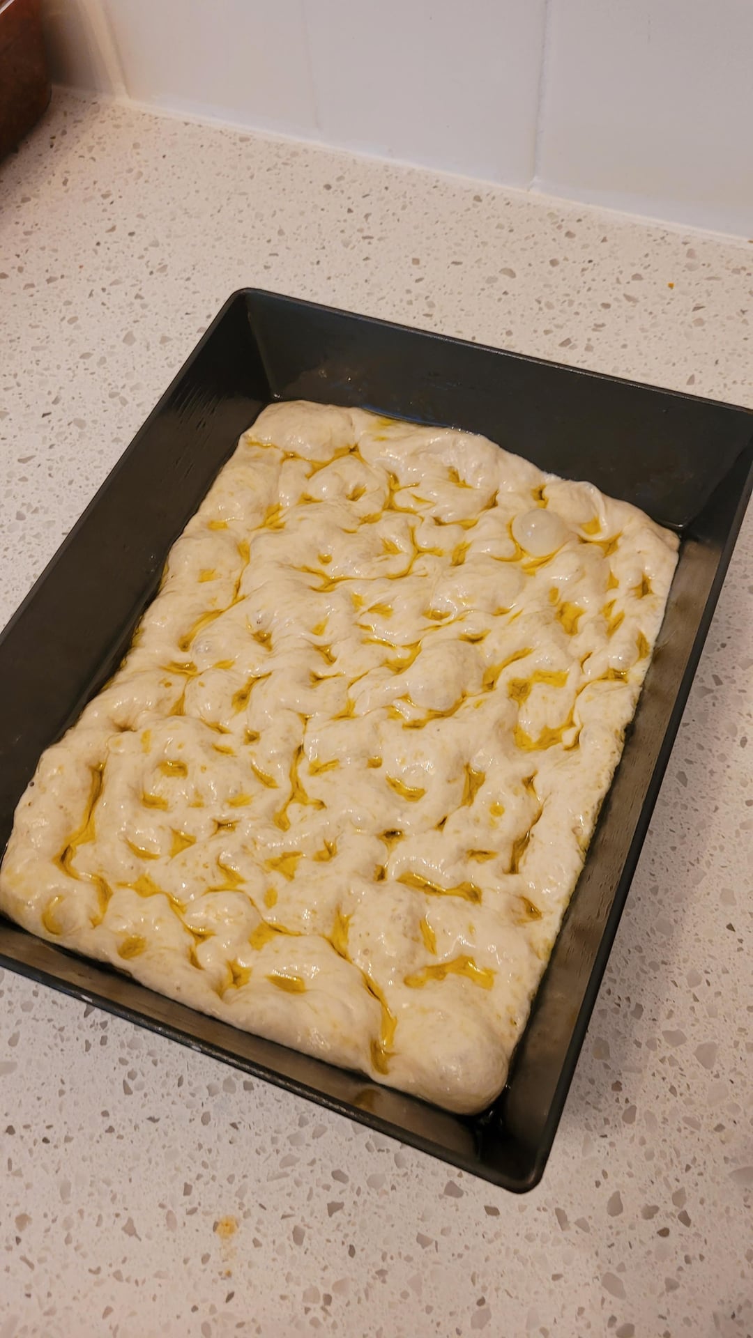 Normally it's a 48-96 hour focaccia but we meal planned on yesterday and I wanted to make this to go with our pasta, so shorter cold ferment.