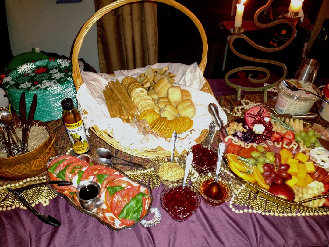 I know the photos aren't the prettiest, the lights were not on but it was a medival themed grad party. I helped thrift items to set up the table and bought all food from aldis for $90