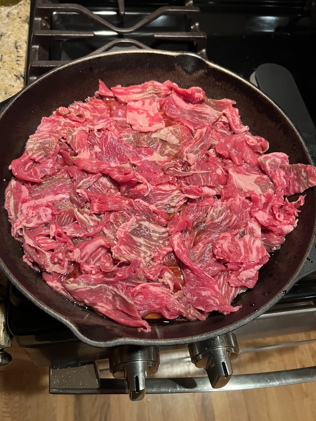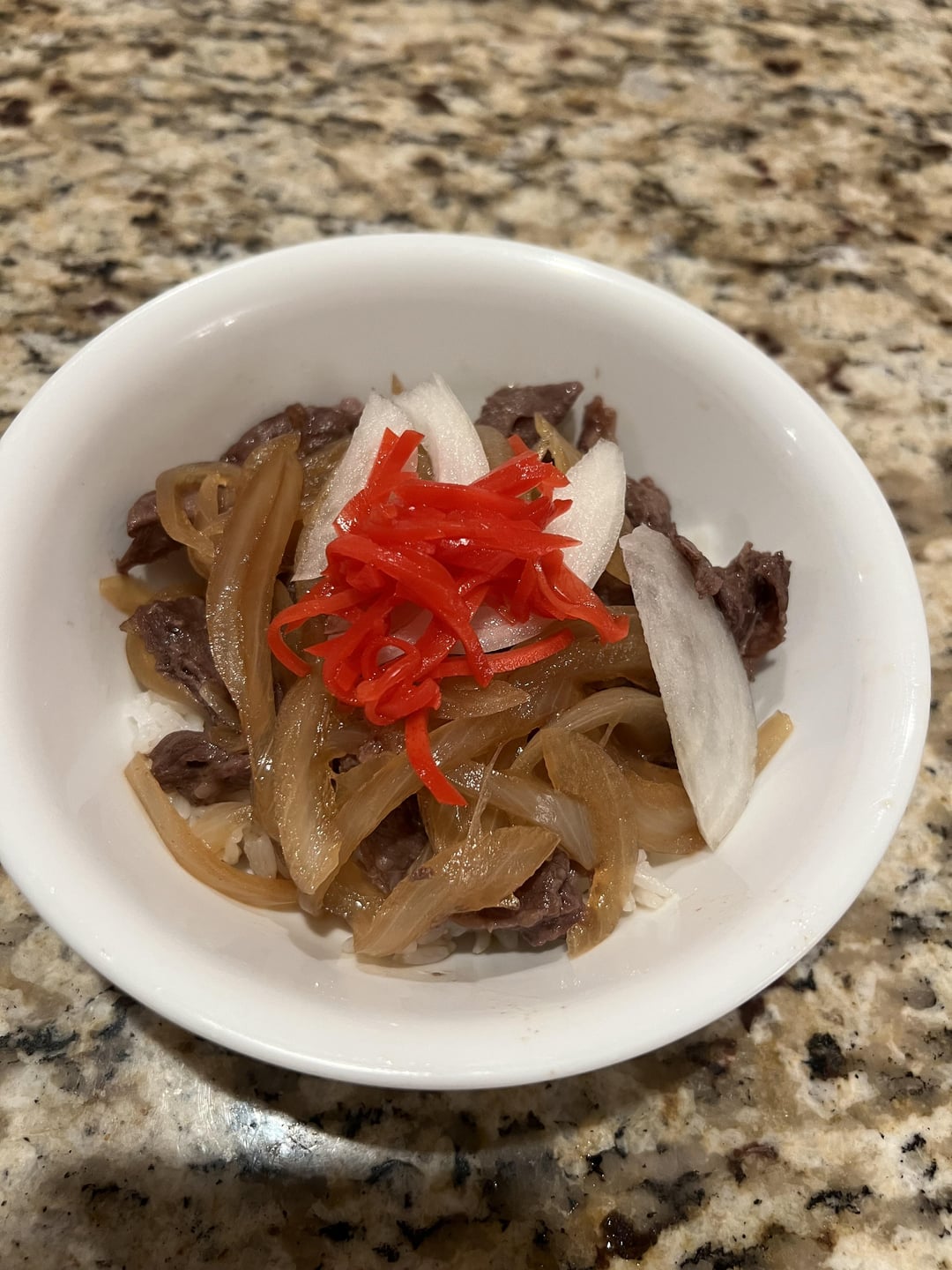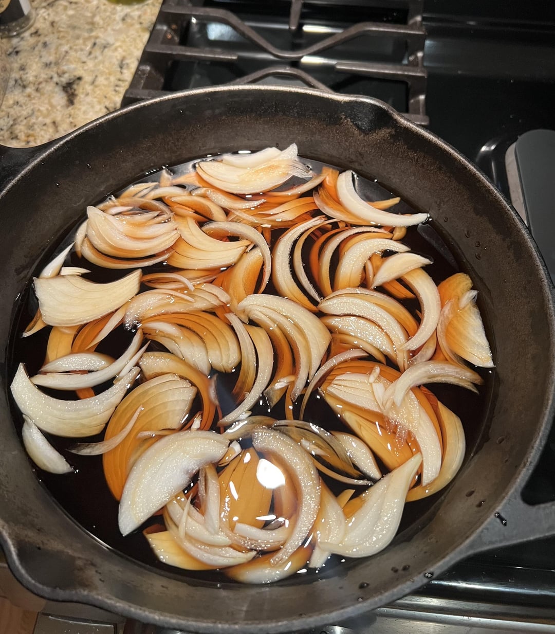 This is hands down my new favorite dish! It’s basically a 1:1 ratio of onion to meat. I topped mine of course with additional raw onion. I’m sad I forgot to buy green onions for it, but overall 10/10 would recommend to an onion lover!