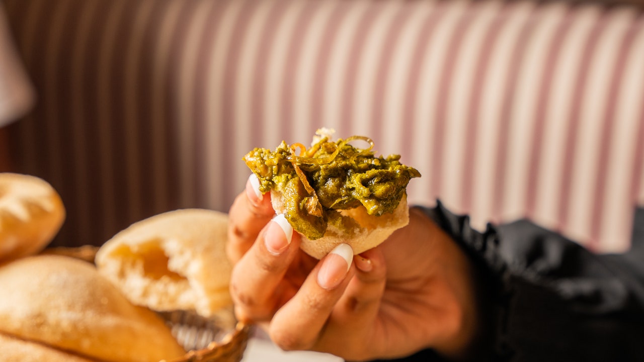 “By the time we arrived, her house was taken over by that aroma and we could already hear the marinated chicken thighs sizzling in her large, cast-iron skillet,” says Rhea. The Sunday lunch table would be set with fluffy white rice, a tangy side salad, fluffy, warm pao—all accompaniments to the glistening, green centerpiece.