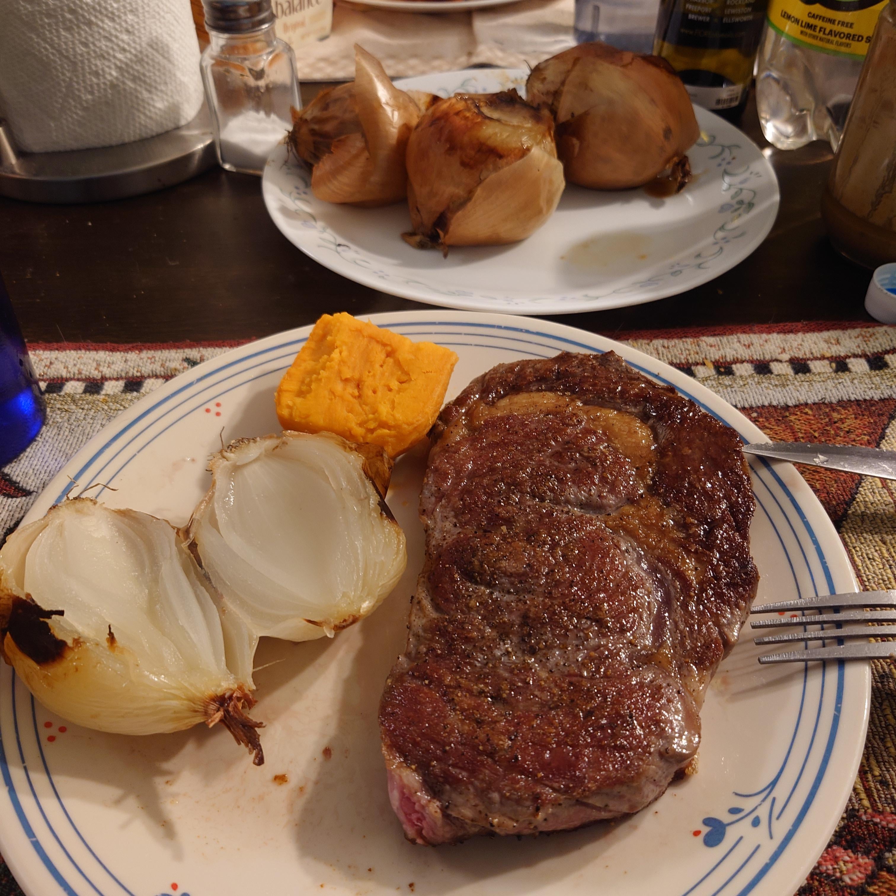 The onions are organic yellows…I'd normally get sweet onions, but the last sweet onions we roasted weren't that good.Also we've both served ourselves at this point…the three in the middle are for seconds. by ZBLongladder 3 Comments fuckyourcanoes 11 months ago Why would you boil sweet potatoes when you could bake them? honkyponkydonky 11 months ago  Potatocrips423 11 months ago I thought that was just a block of cheddar. But it all looks amazing.Write A CommentYou must be logged in to post a comment.