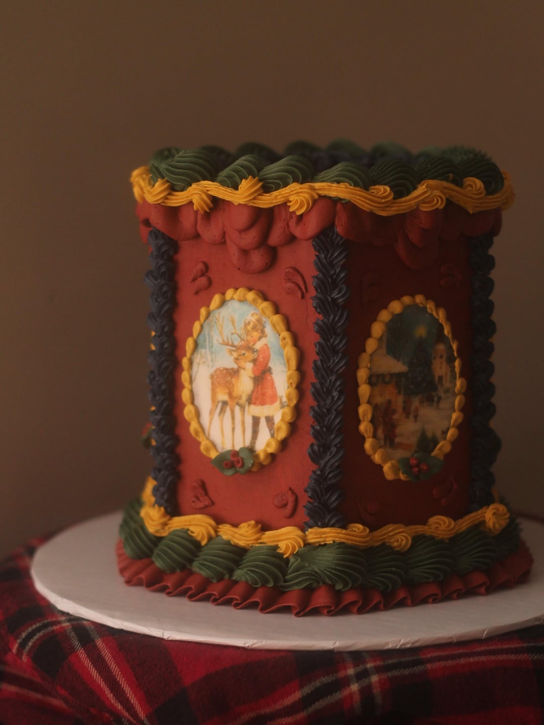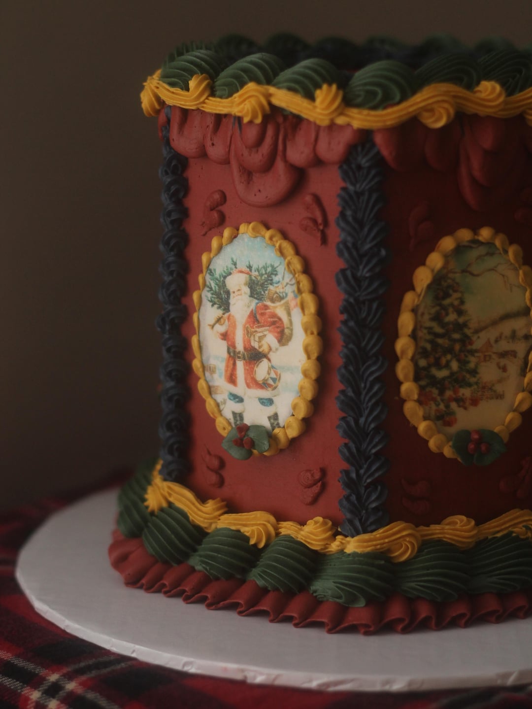 Omg this is glorious. How did you do the images on the panels?? They totally remind me of these gorgeous Christmas pastries we had growing up as kids in Switzerland. They had beautiful edible sugar paintings of Santa on them. Looked exactly like this. So nostalgic. Wow wow wow 😮