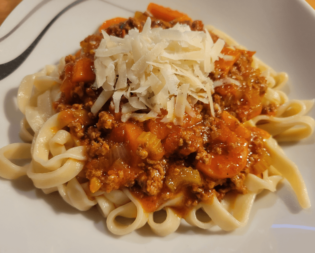 Homemade Tagliatelle with Ragù alla bolognese from scratch.