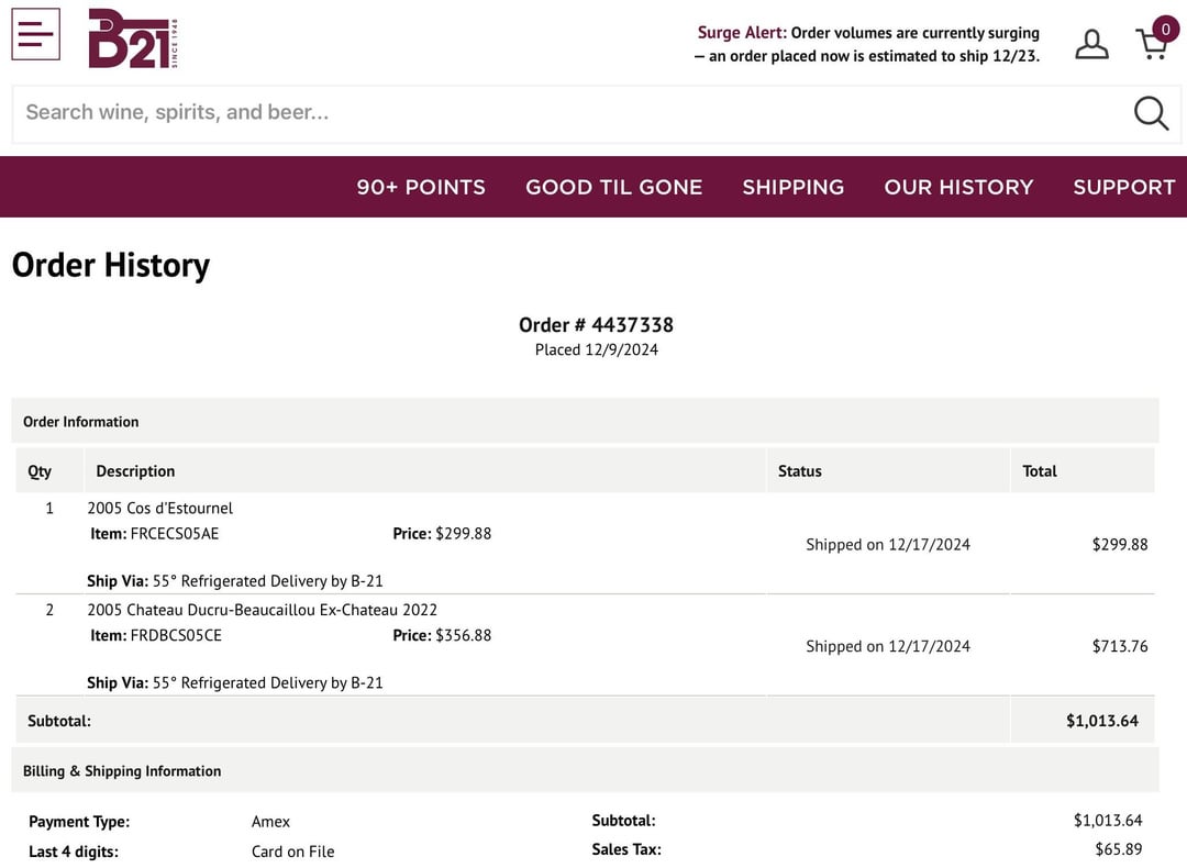 Is this wrong or did B-21 send me regular bottles instead of the “ex-Chateau 2022” bottles that I ordered?