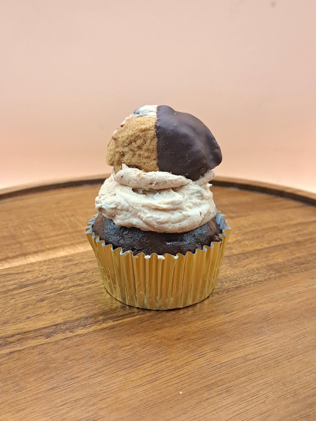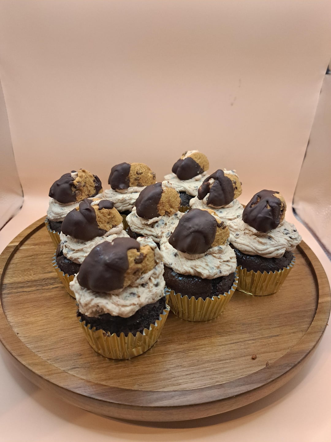 -Gluten Free chocolate cupcake, GF edible chocolate chip cookie dough buttercream, and an almond flour cookie sandwiched with the BC and dipped in chocolate.