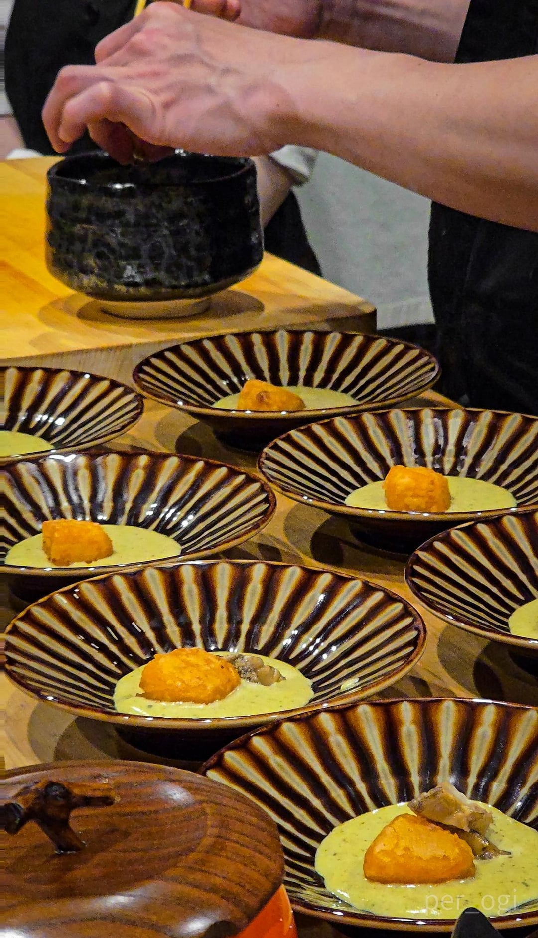 We went to a 12 seat 18 course Omakase in Kyoto. This was our first omakase, and it was a great experience, and the food of course was amazing. I made reservations on Tabelog.