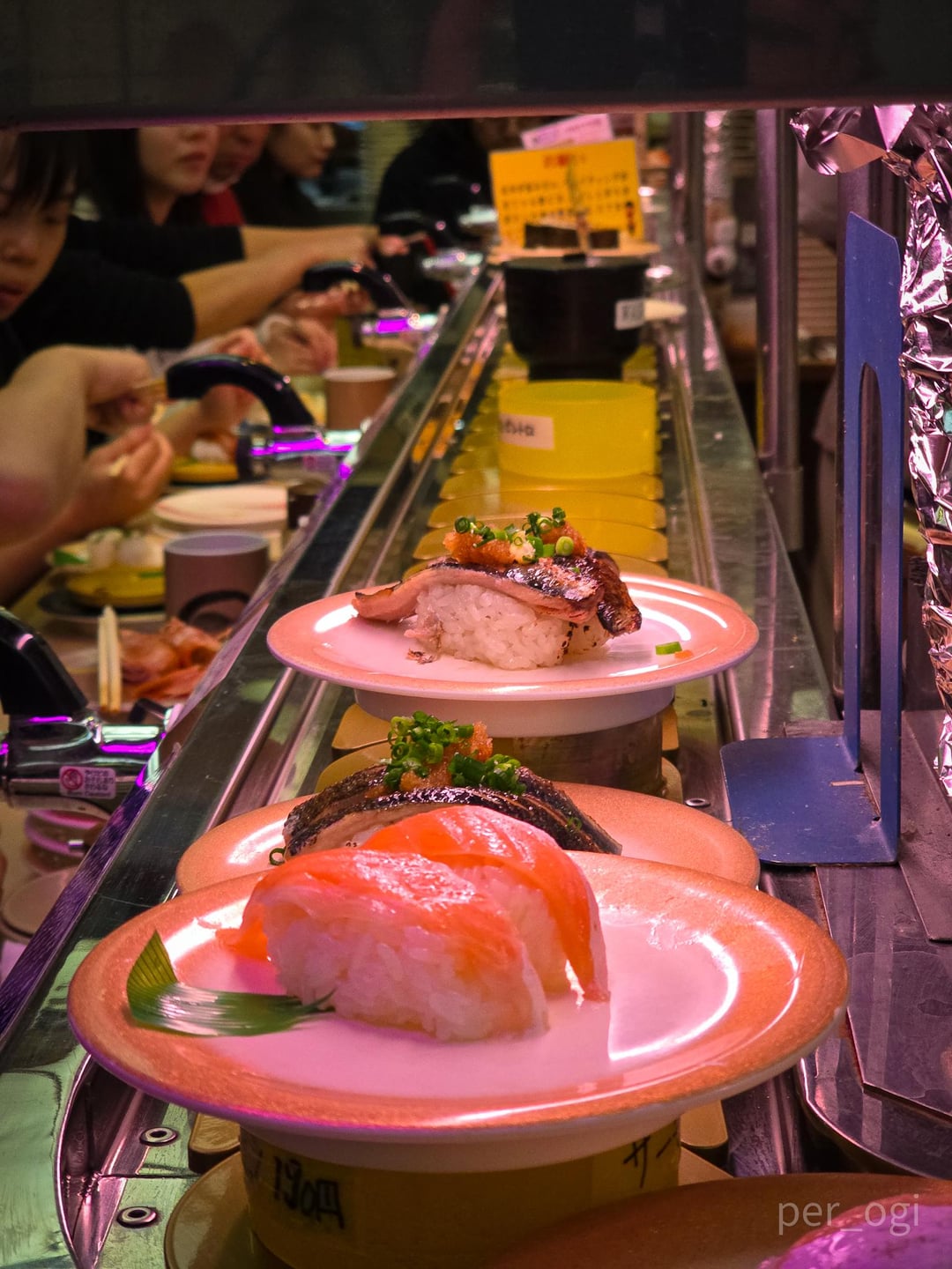 1. Is there a seating hierarchy? Meaning do people nearest sushi chef get first pick of prime dishes? What happens to any plates not chosen? Do they get recycled until they’re gone?