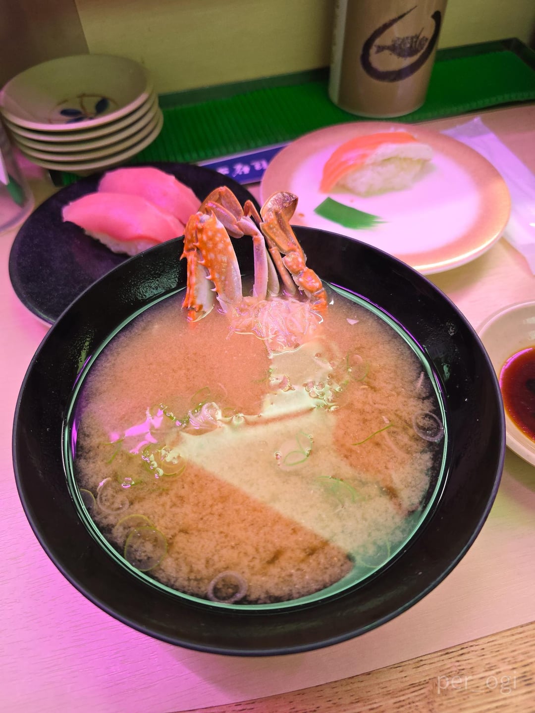 We stopped in here for lunch, and so glad we did. Tea came from the bar itself. Sushi moved along the belt, and my crappy Japanese ordering speciality pieces like fatty tuna, and ebi. It was a good experience with good sushi at a ridiculously low price. We had about 30 plates with Miso crab soup for $39.