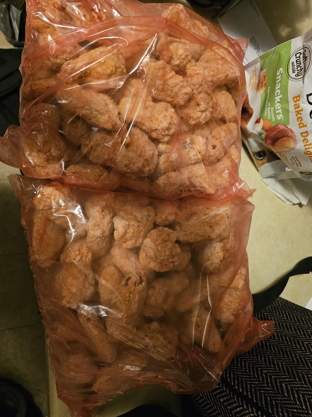 Anyone tried these before? They're a dry-breaded hot wing and honestly they are pretty damn spicy. Used to get them from a local pizza place but they closed down so my girlfriend got me 12 pounds of them for Christmas lol