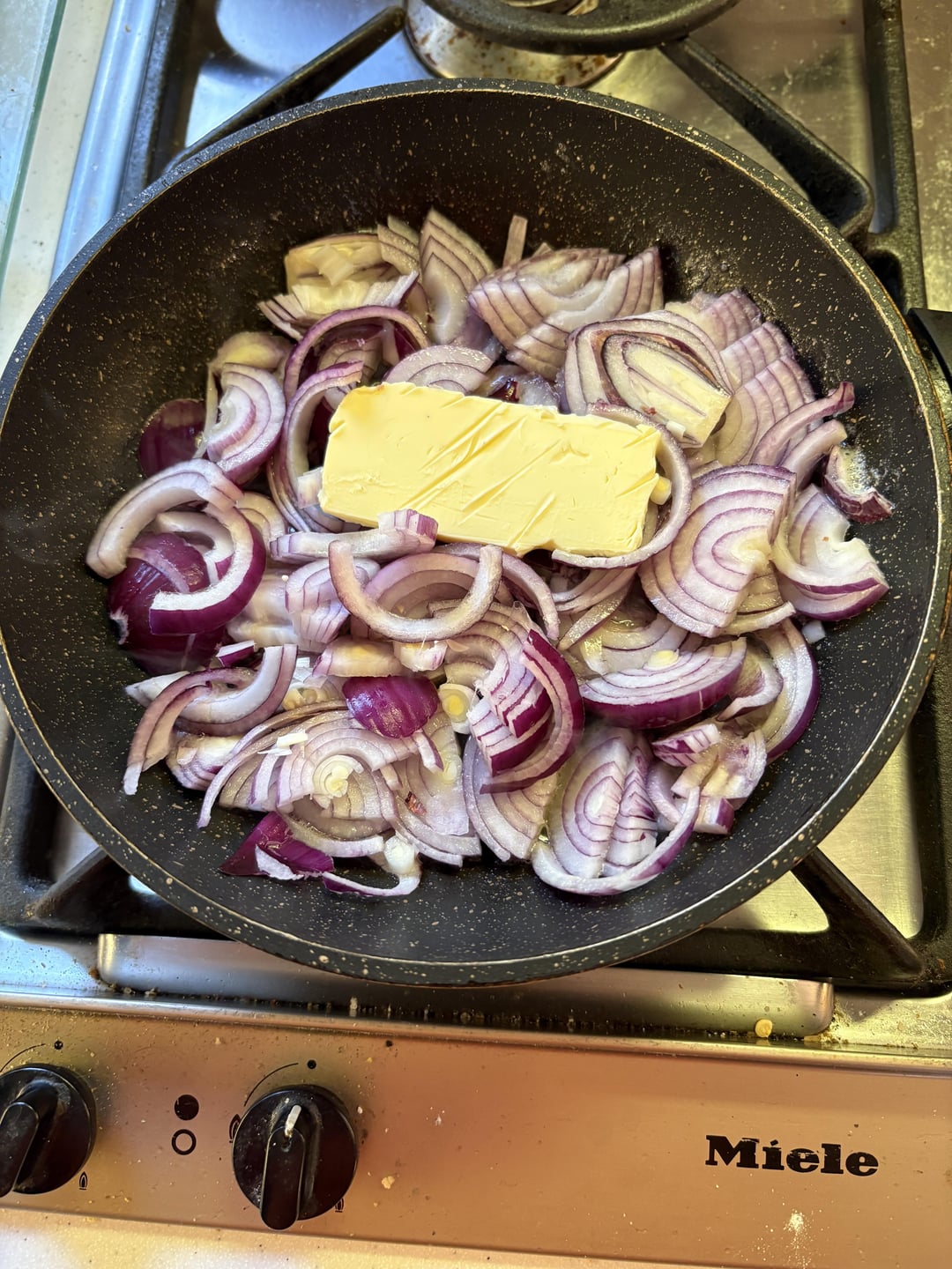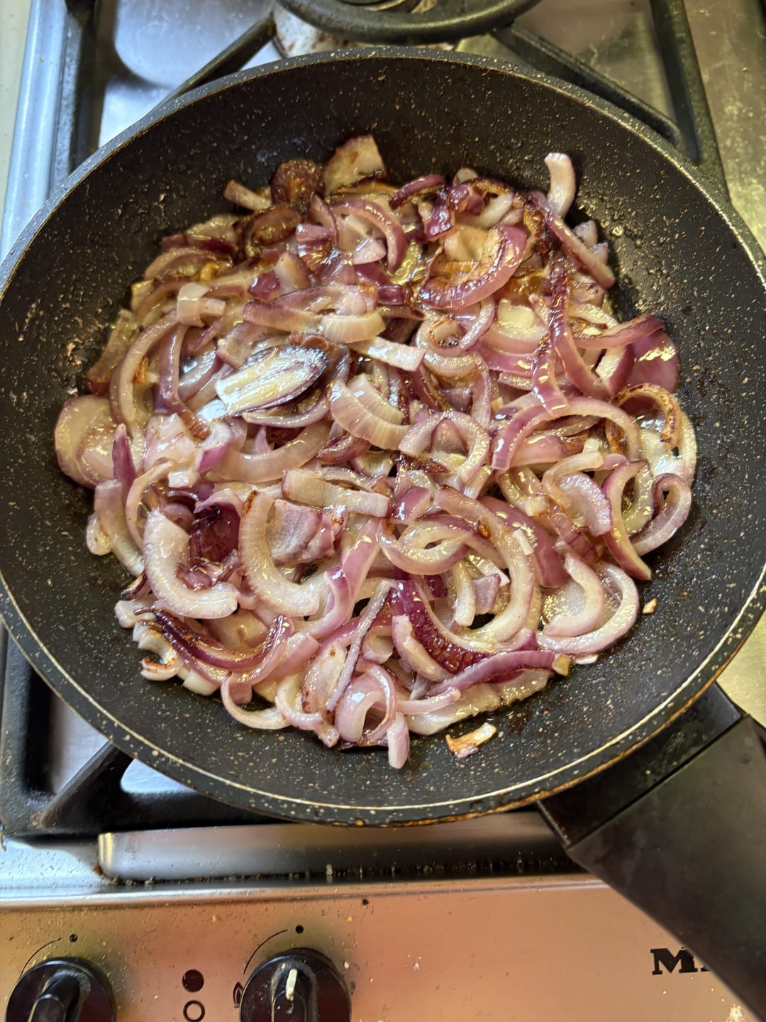 As much as I love red onions, I always think their color is so gross when they’re sautéed lol