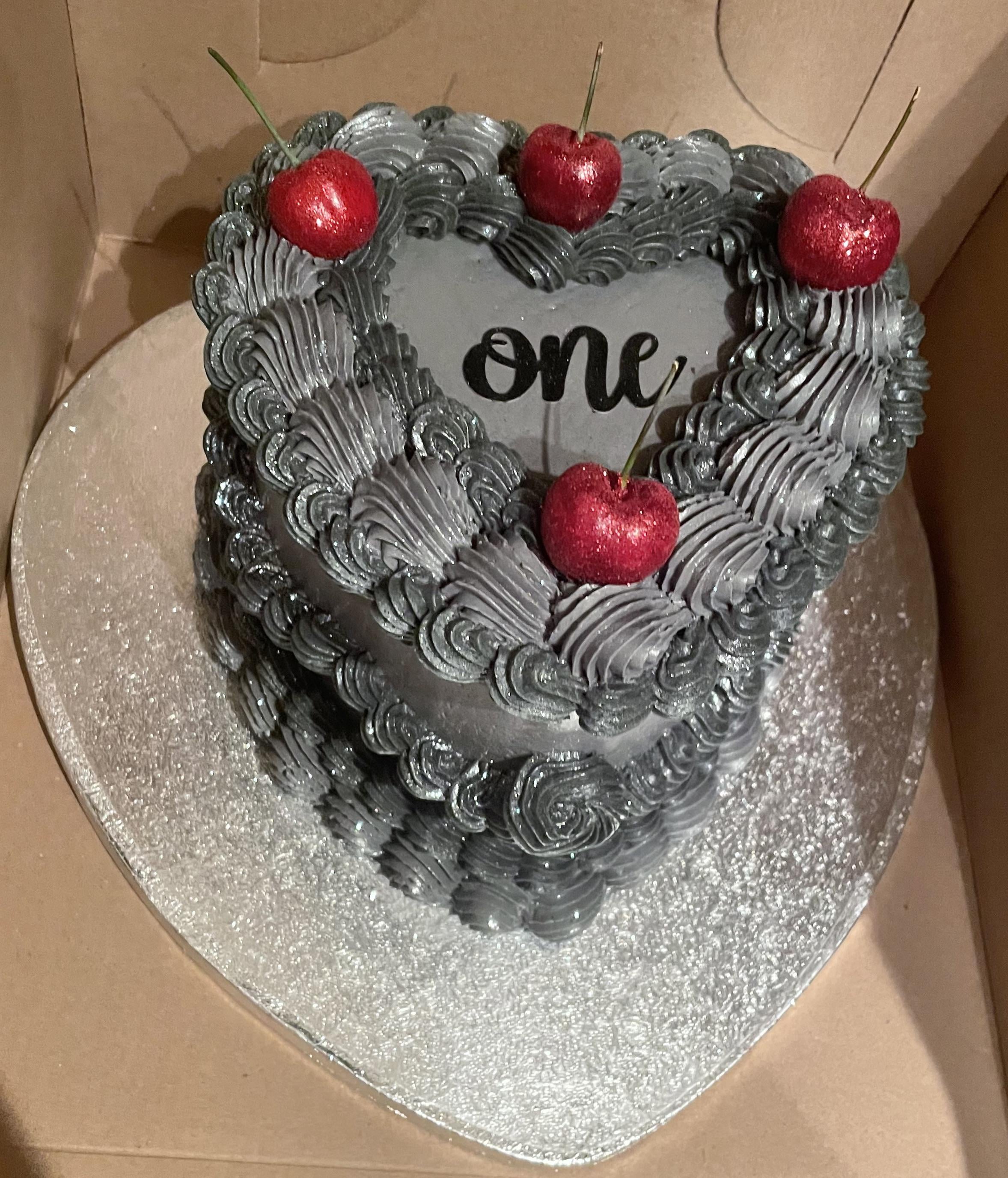 A coworker asked for a cake to celebrate her friend’s one year sobriety, I couldn’t say no to that!! It’s a chocolate cake with a strawberry filling and vanilla Swiss meringue buttercream. This was my first time doing a cake with this much piping on the sides, first time using edible glitter and doing dipped cherries! I know I will get better the more I do it! I had so much fun!