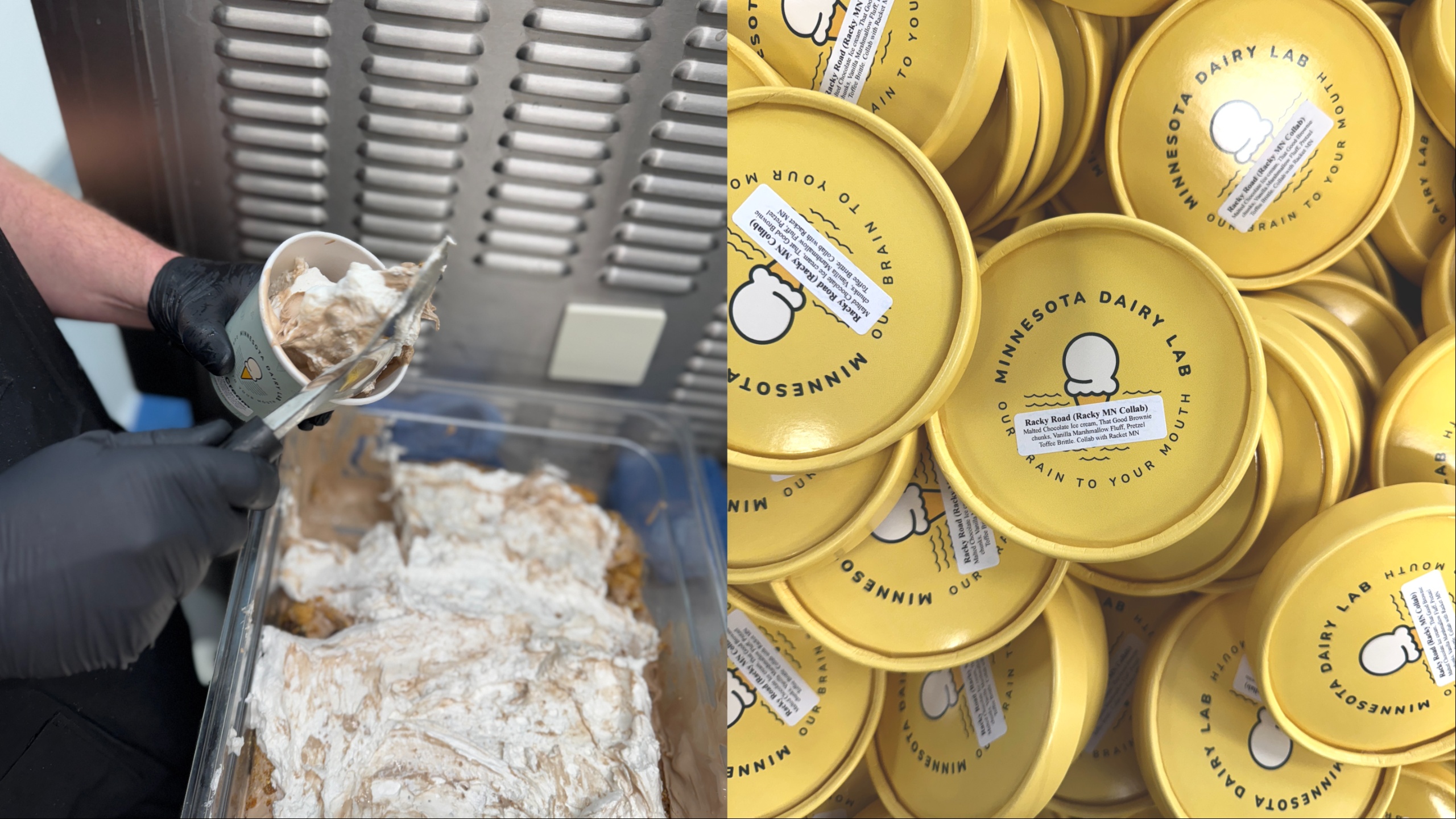 You can order Minnesota Dairy Lab pints online—including Racky Road—for pickup at Minnesota Dairy Lab’s Northeast kitchen, or find select pints at vendors around town.
