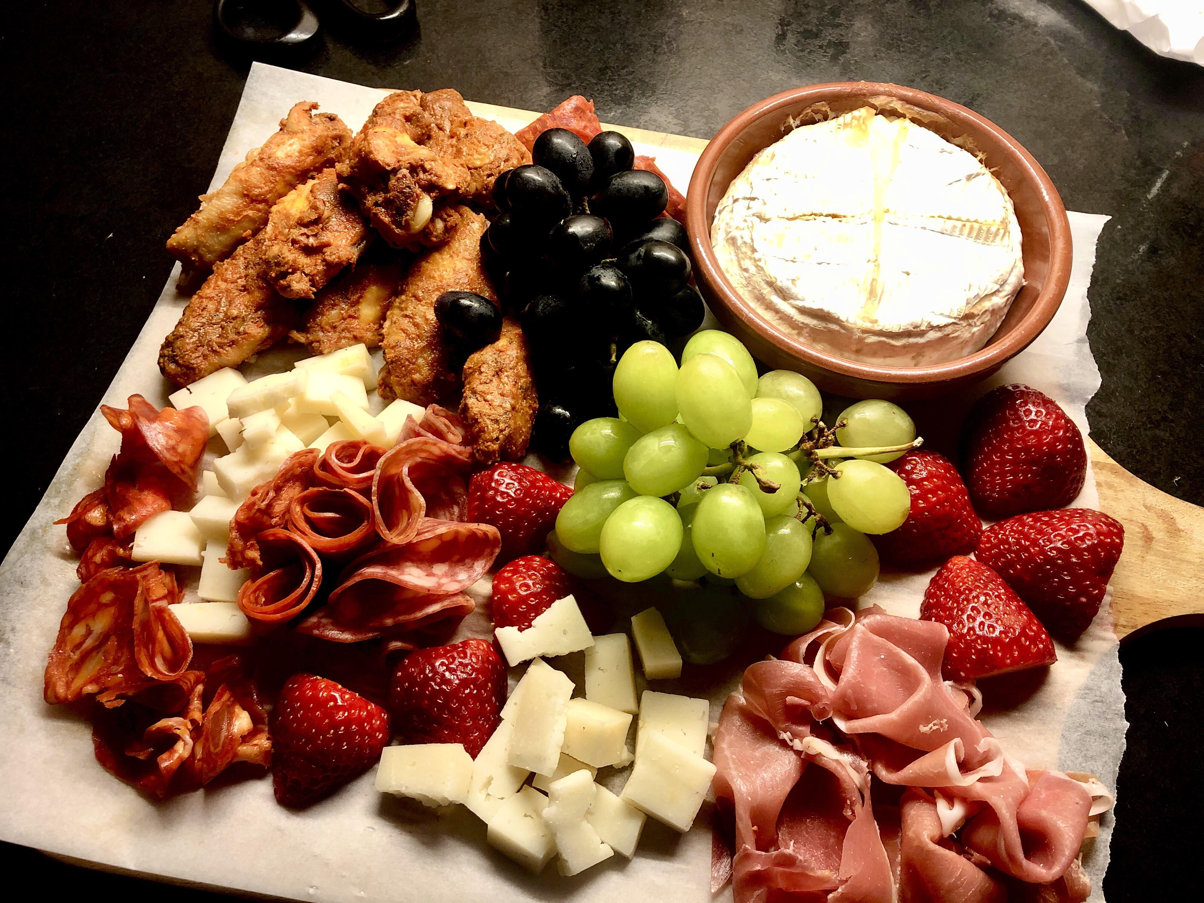 The Camembert we heated up and added some onion chutney to the top and it was delicious. The meat in the right hand corner was buffalo chicken wings. I pretty much just threw what we had on there. Crackers were kept separate due to me having a gluten and nut allergy. I’d like to throw some pate on the board next time. The whole board cost £15 in ingredients.