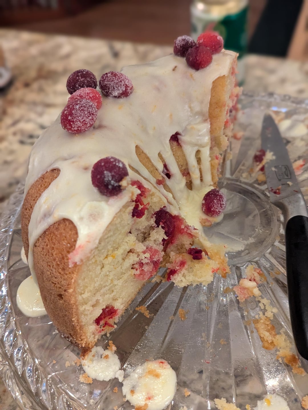 Beautiful cake! Cranberry Orange? Looks velvety like a pound cake.